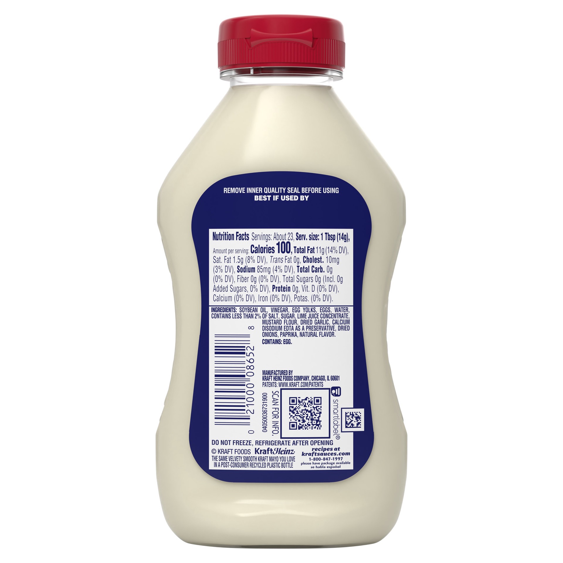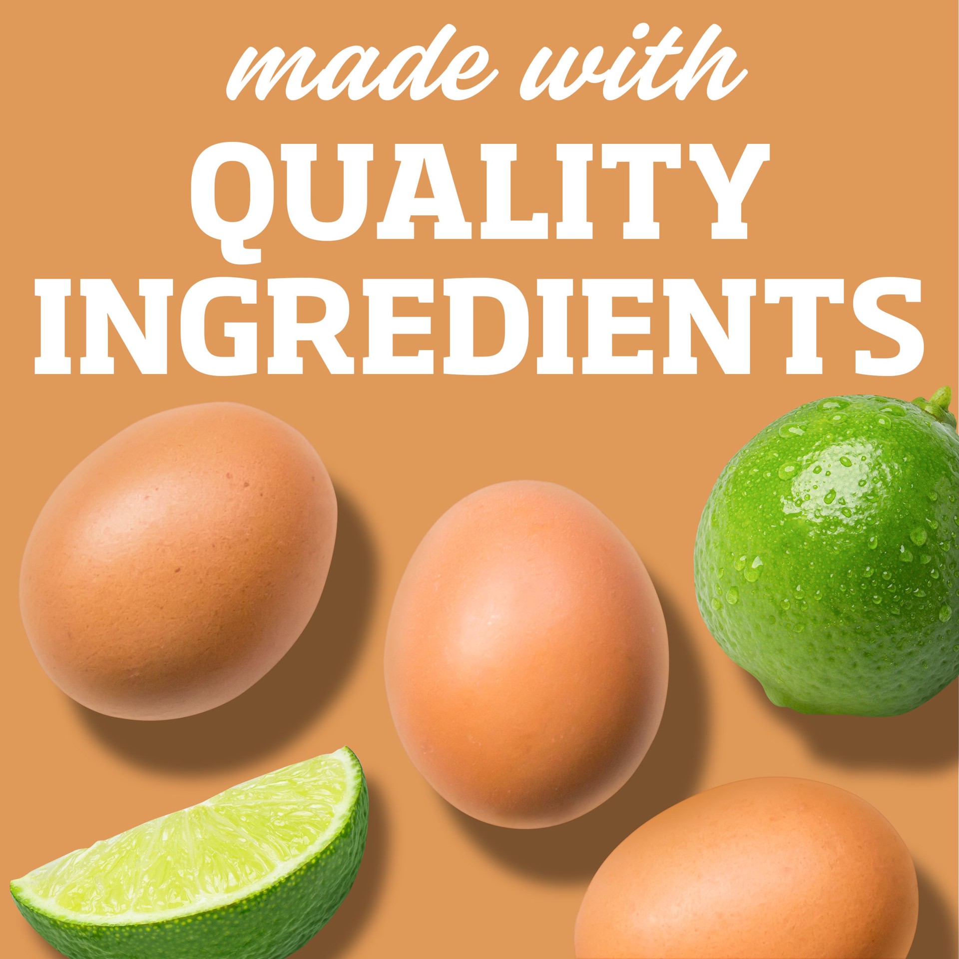 SOYBEAN OIL, VINEGAR, EGG YOLKS, EGGS, WATER, CONTAINS LESS THAN 2% OF SALT, SUGAR, LIME JUICE CONCENTRATE, MUSTARD FLOUR, DRIED GARLIC, CALCIUM DISODIUM EDTA AS A PRESERVATIVE, DRIED ONIONS, PAPRIKA,…
