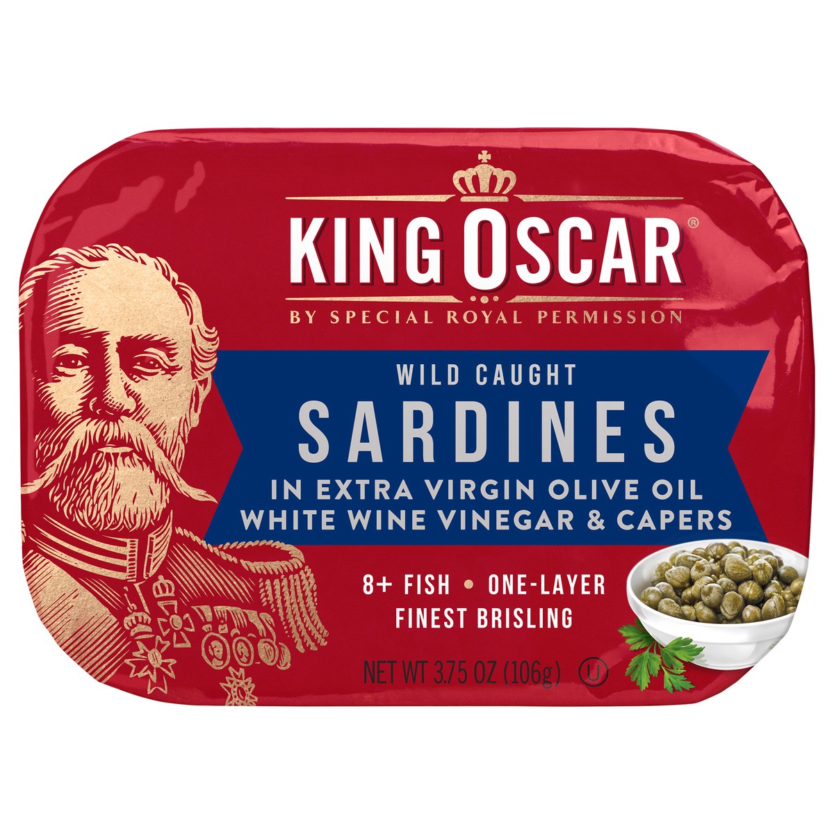 King Oscar Wild Caught Sardines in Extra Virgin Olive Oil with White Wine Vinegar & Capers 3.75 oz