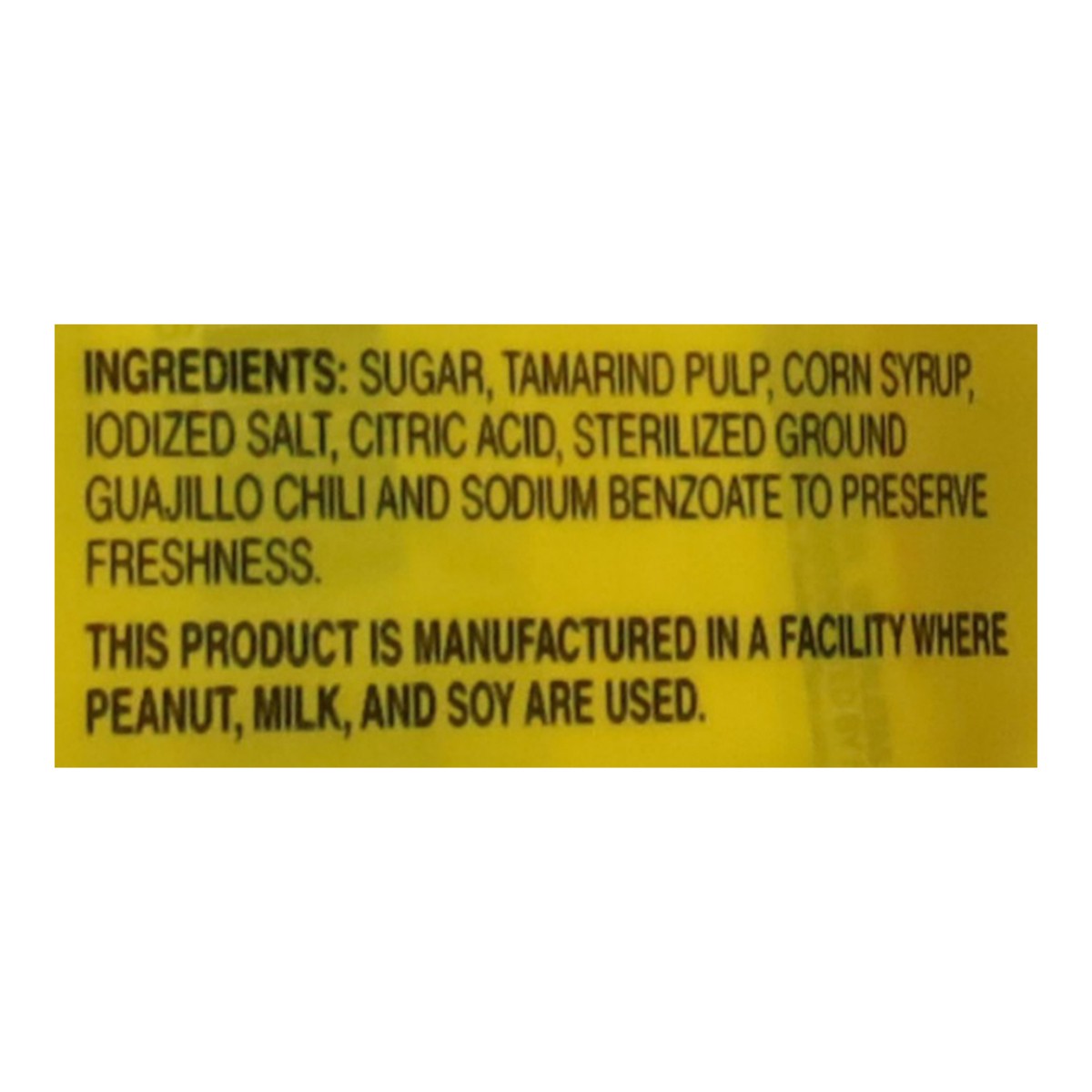Sugar, Tamarind Pulp, Corn Syrup, Iodized Salt, Citric Acid, Sterilized Ground Guajillo Chili and Sodium Benzoate to Preserve Freshness.