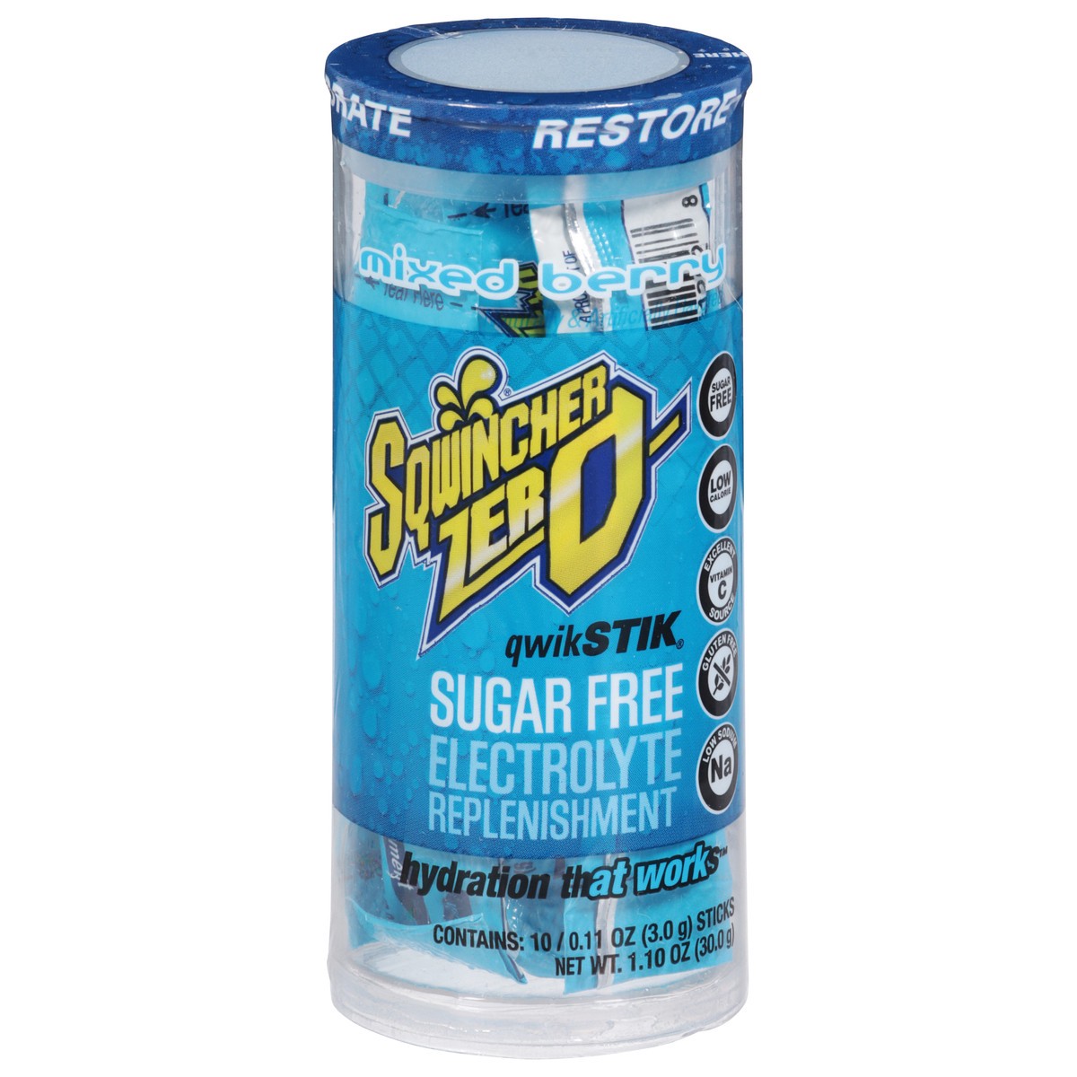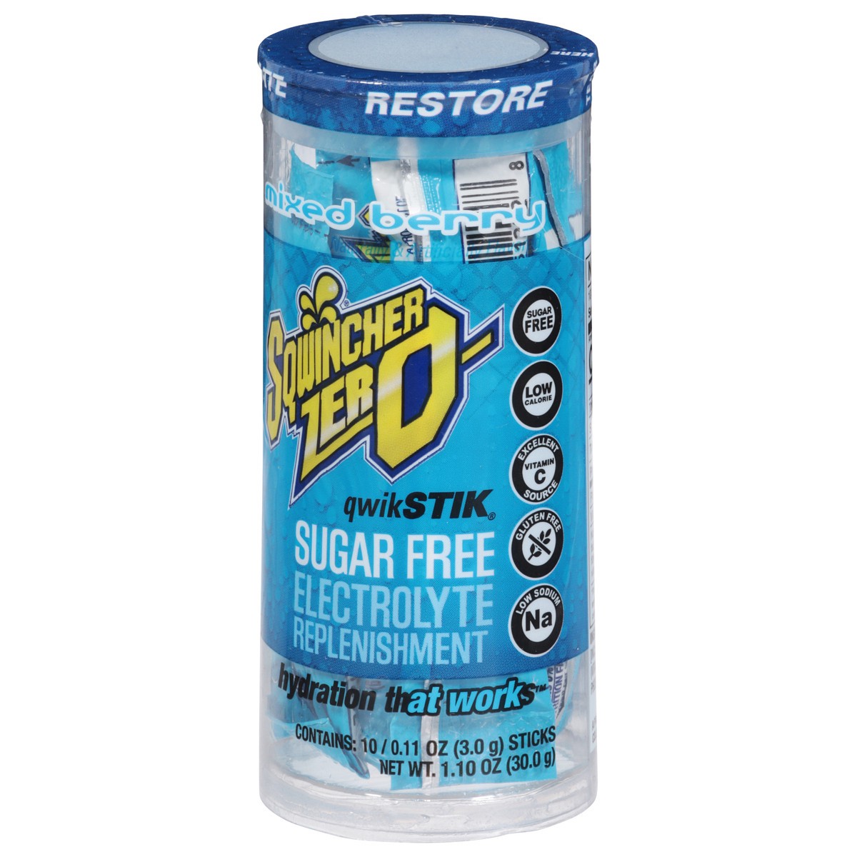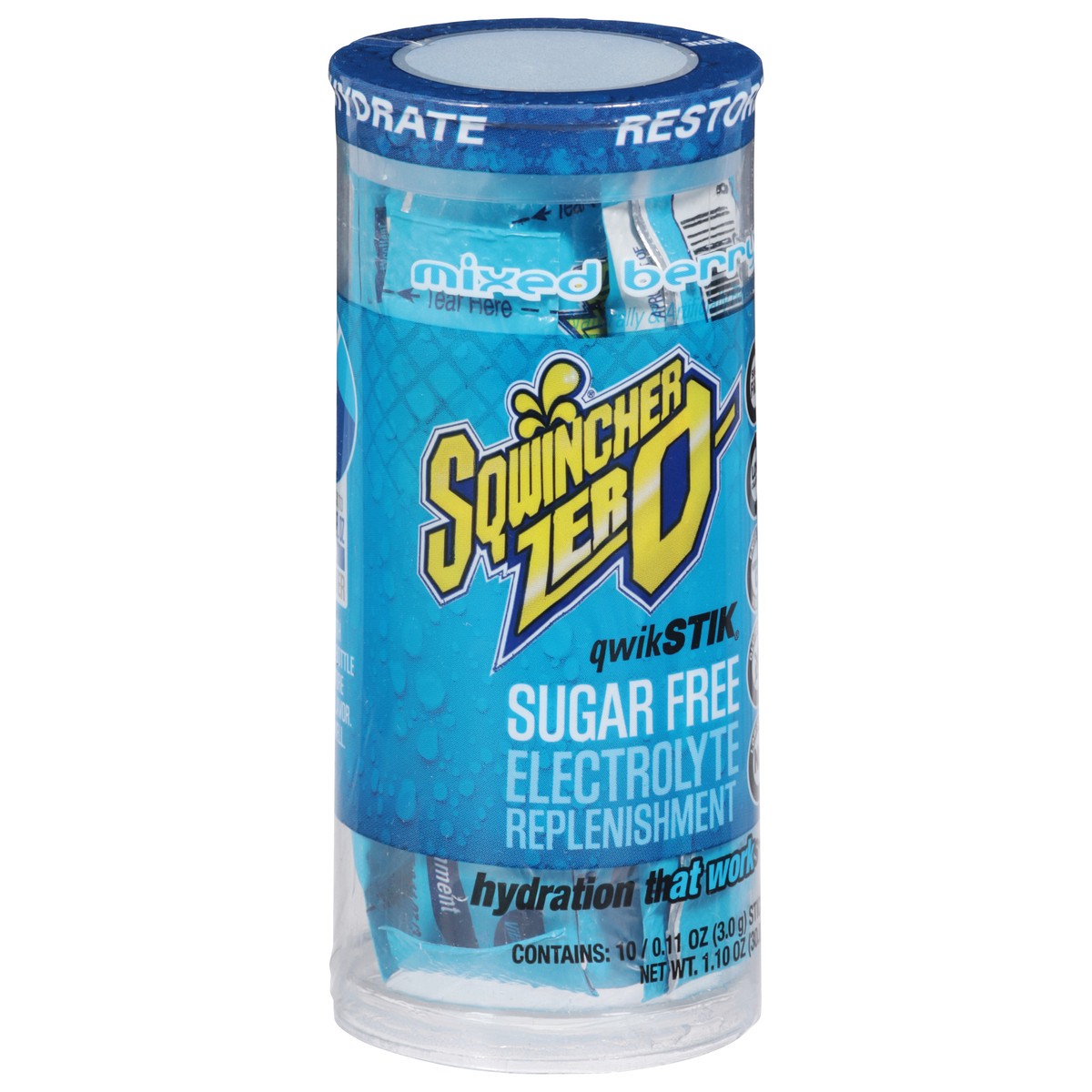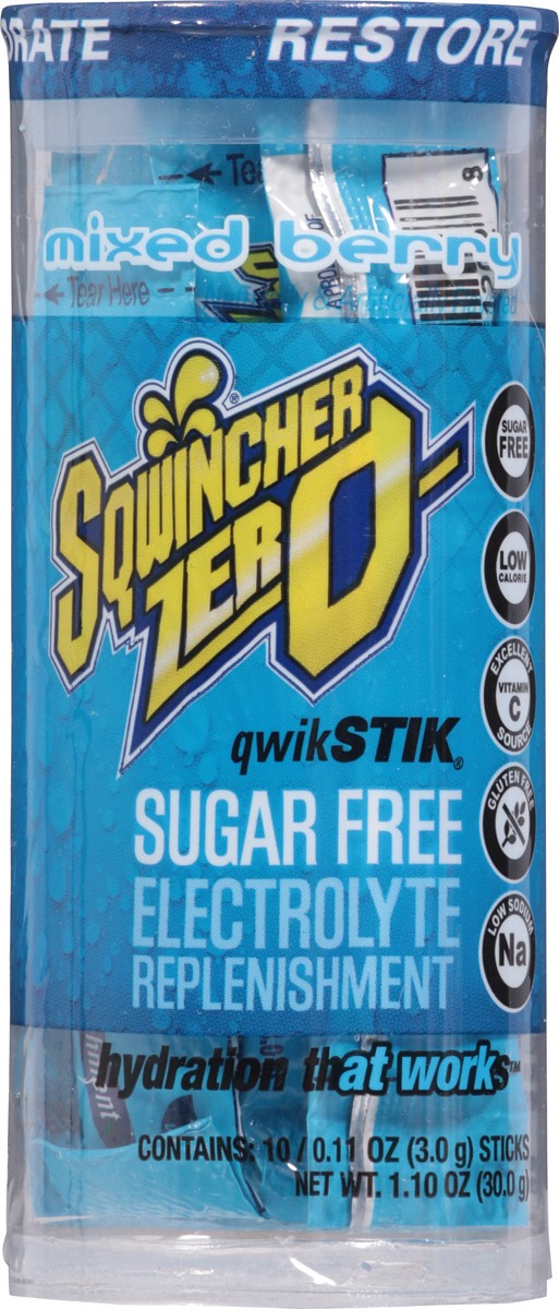 Sqwincher Zero QwikStik Sugar Free Restore Mixed Berry Electrolyte Replenishment - 10 ct - 0.11 oz Sticks
