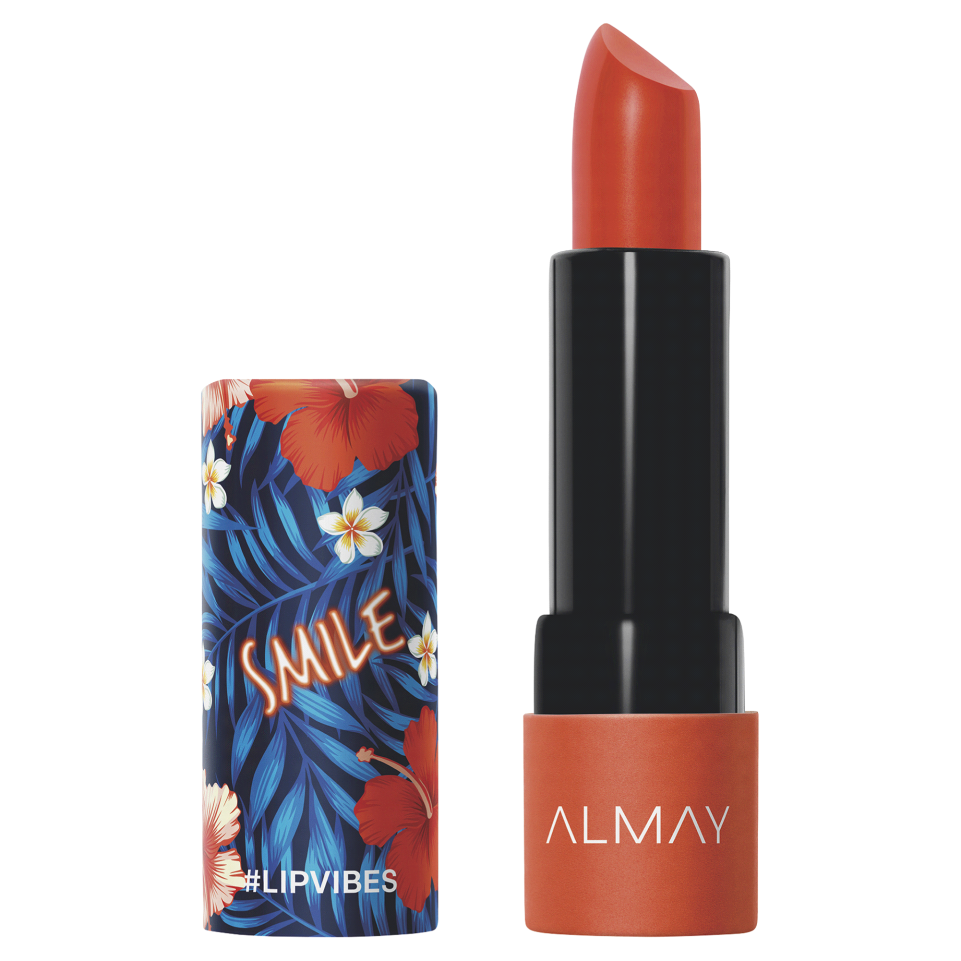 (hashtag)lipvibes. almay.com. Made in USA with US and non-US components.