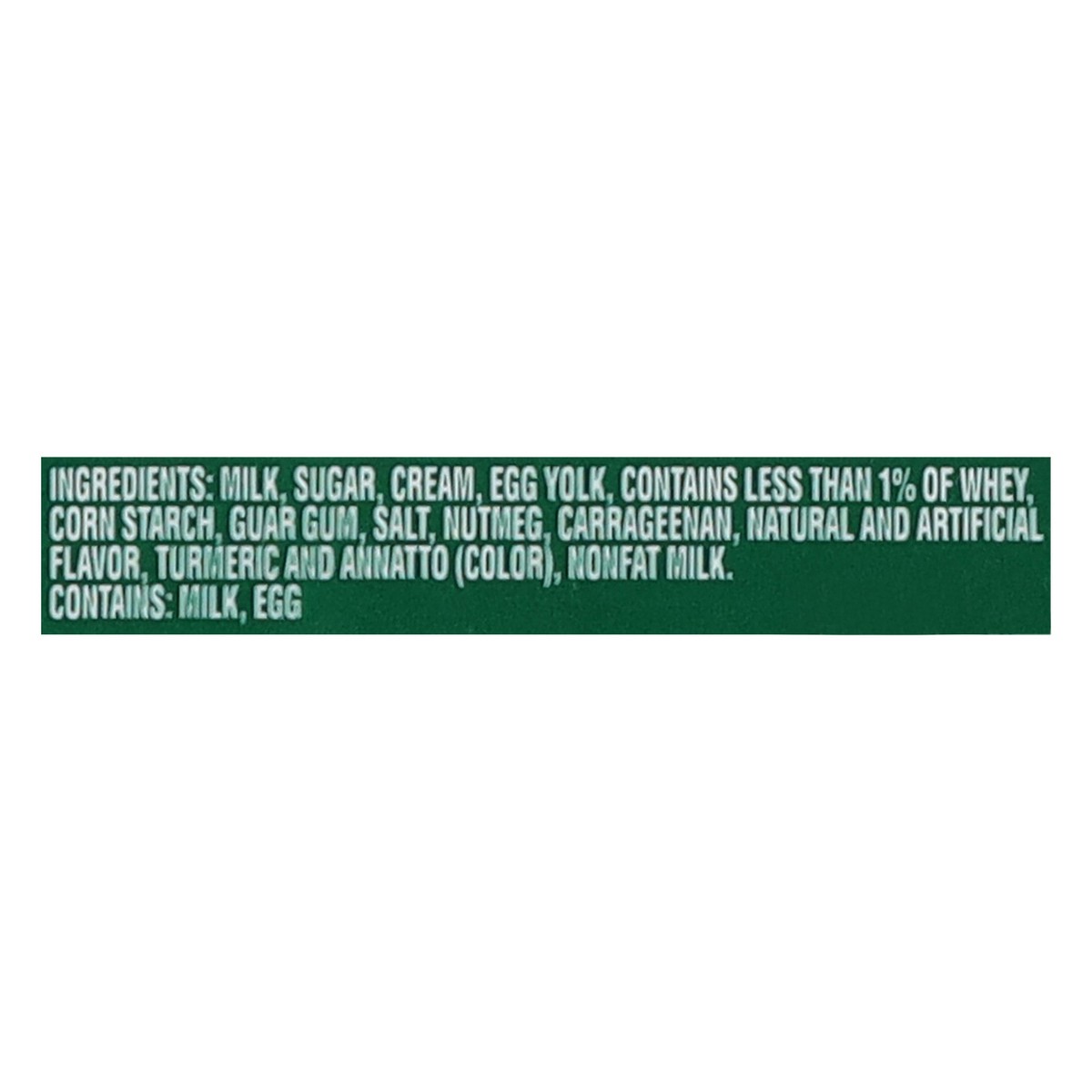 Milk, Sugar, Cream, Egg Yolk, Contains Less than 1% of Whey, Corn Starch, Guar Gum, Salt, Nutmeg, Carrageenan, Natural and Artificial Flavor, Turmeric and Annatto (Color), Nonfat Milk.