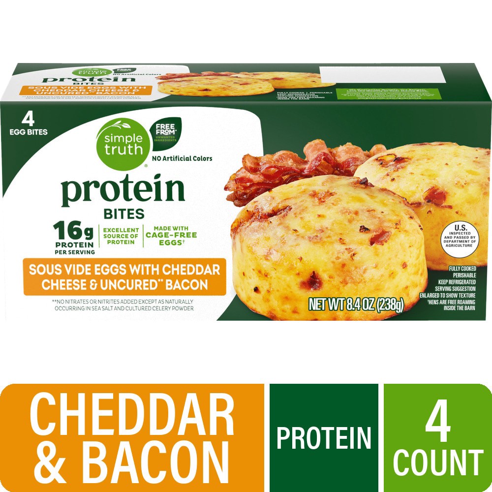 Simple Truth® Protein Cheddar Cheese and Bacon Egg Bites are delicious breakfast bites and also contain 16g protein per serving. Delicately cooked sous vide style, these feature locally sourced, cage-…