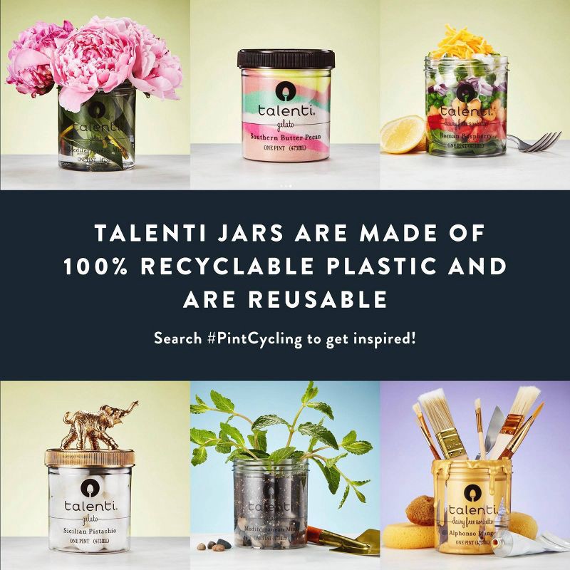 - Talenti Gelato and Sorbetto Jars are made with 100% Recycled Plastic