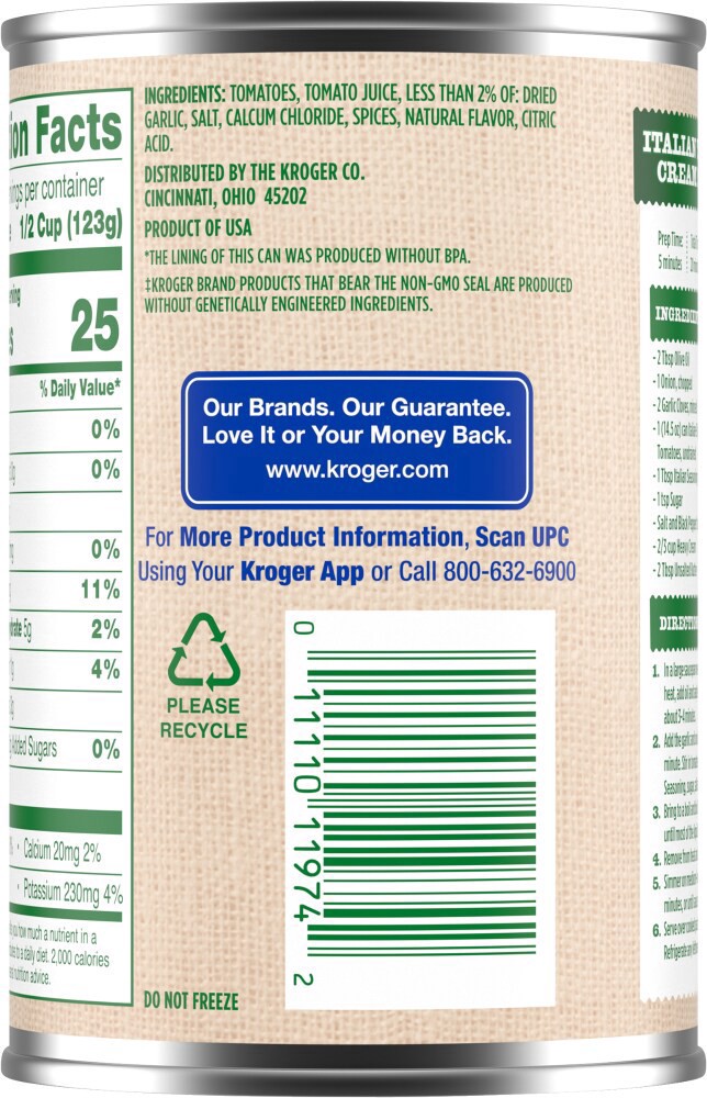 Kroger Italian Style Diced Tomatoes, 14.5 oz