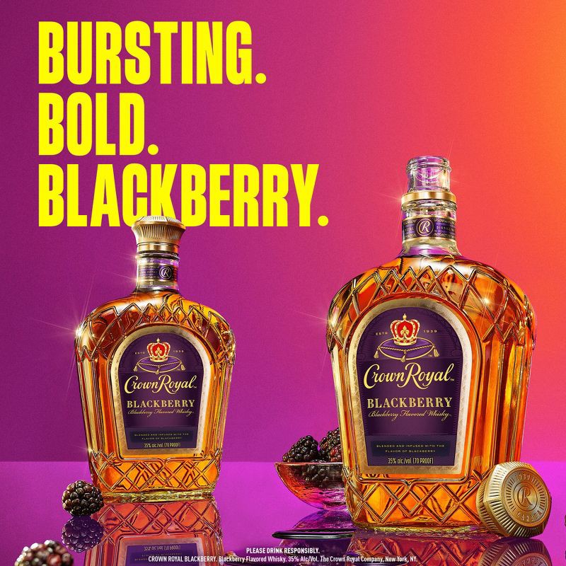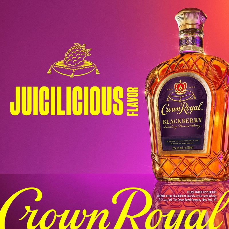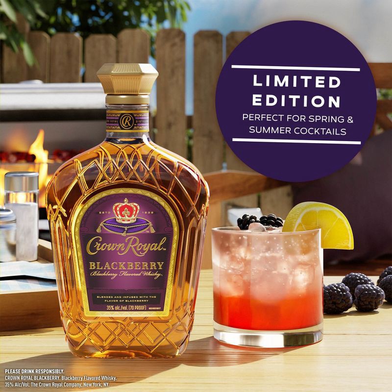 - Includes one 750 mL bottle of Crown Royal Blackberry Flavored Whisky70 ProofPerfect for any summer celebrations or alcohol giftsBest served in a Royal Blackberry Lemonade CocktailA whisky to complement all of your gatheringsTasting notes of fresh blackberries complementing the signature richness of Crown Royal Blended WhiskyBest served in a Royal Blackberry Lemonade Cocktail