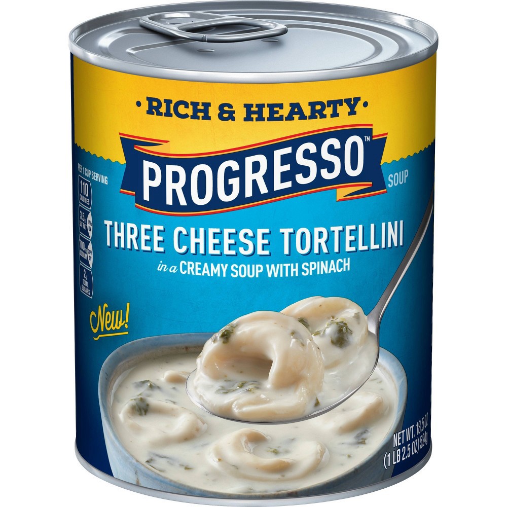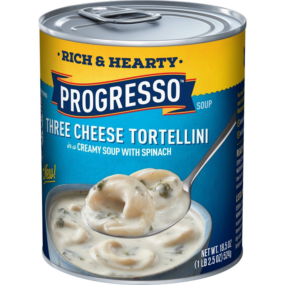 Indulge in the rich and creamy taste of Progresso Rich & Hearty Three Cheese Tortellini in a Creamy Soup With Spinach. This delicious, decadent canned soup contains cheese tortellini in a rich creamy …