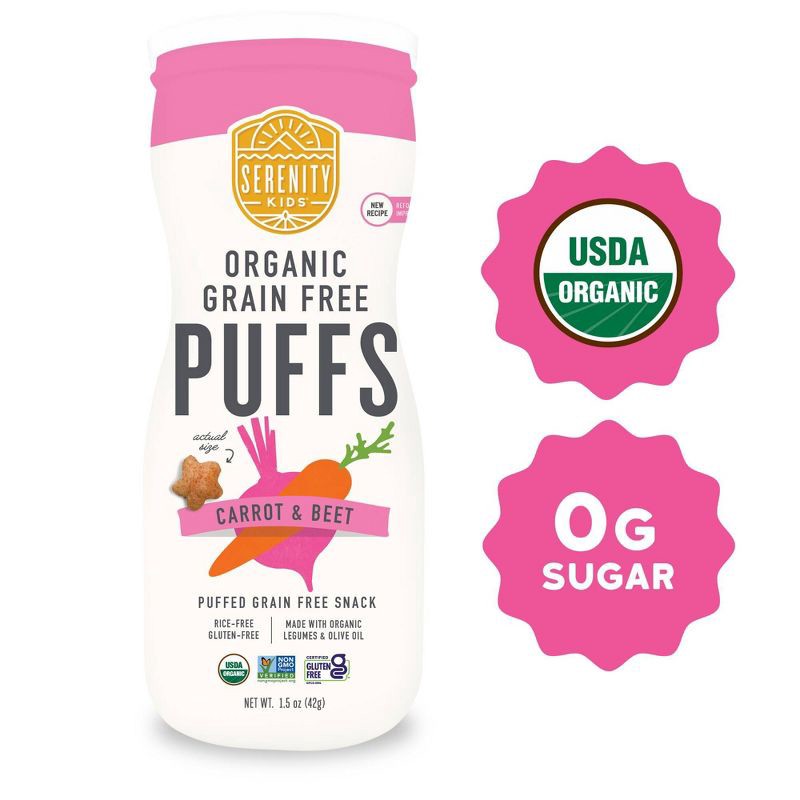 Serenity Kids Carrot & Beet Organic Grain Free Puffs Baby & Toddler Snacks - 1.5oz