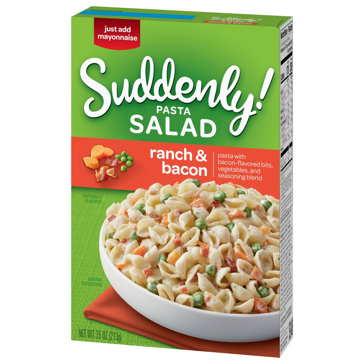 The all-time fan favorite, Suddenly Salad Ranch Bacon recipe is made with wholesome shell pasta, imitation bacon bits, and a ranch seasoning. Just add mayonnaise and serve as a side or top with tomato…