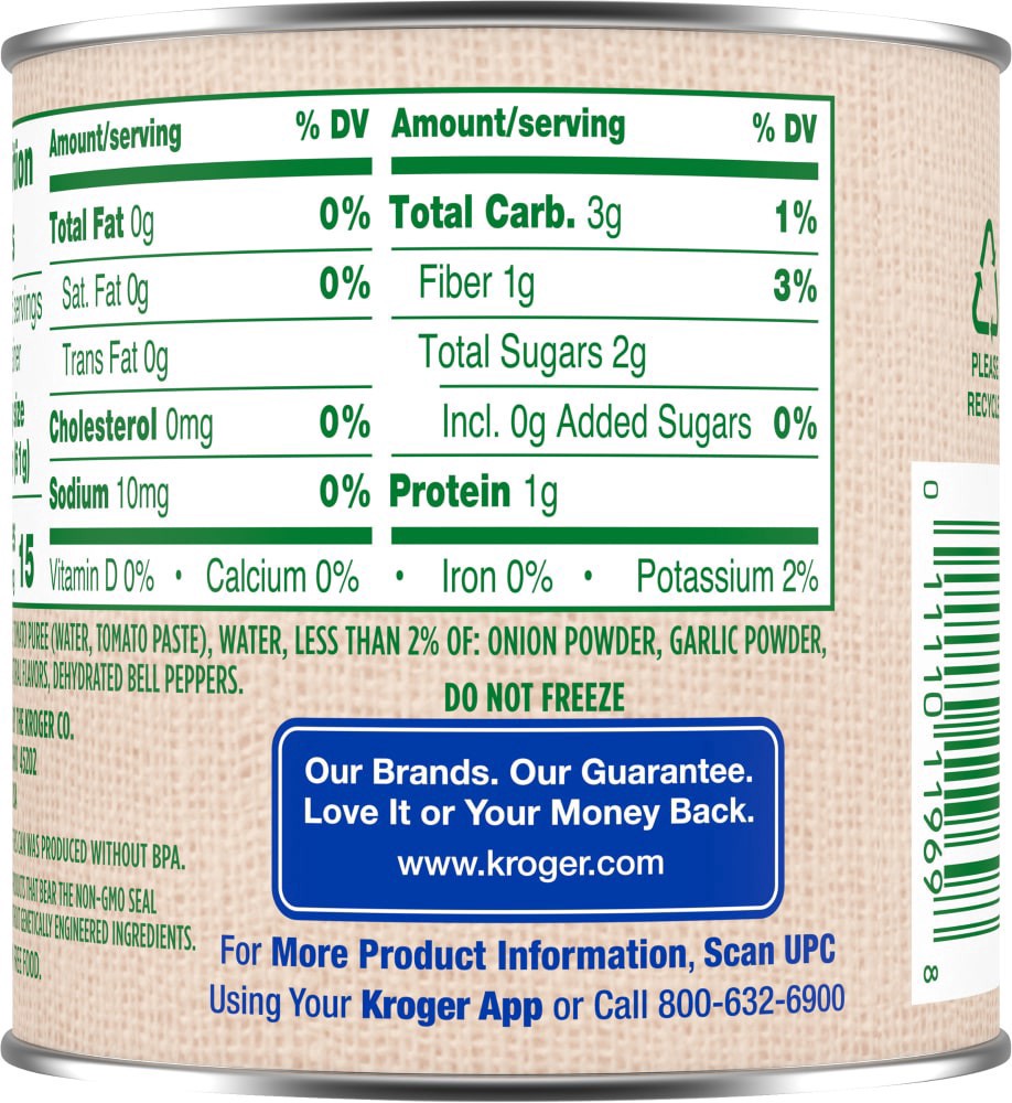 Tomato Puree (Water, Tomato Paste), Water, Less Than 2% Of Onion Powder, Garlic Powder, Citric Acid, Natural Flavors, Dehydrated Bell Peppers.