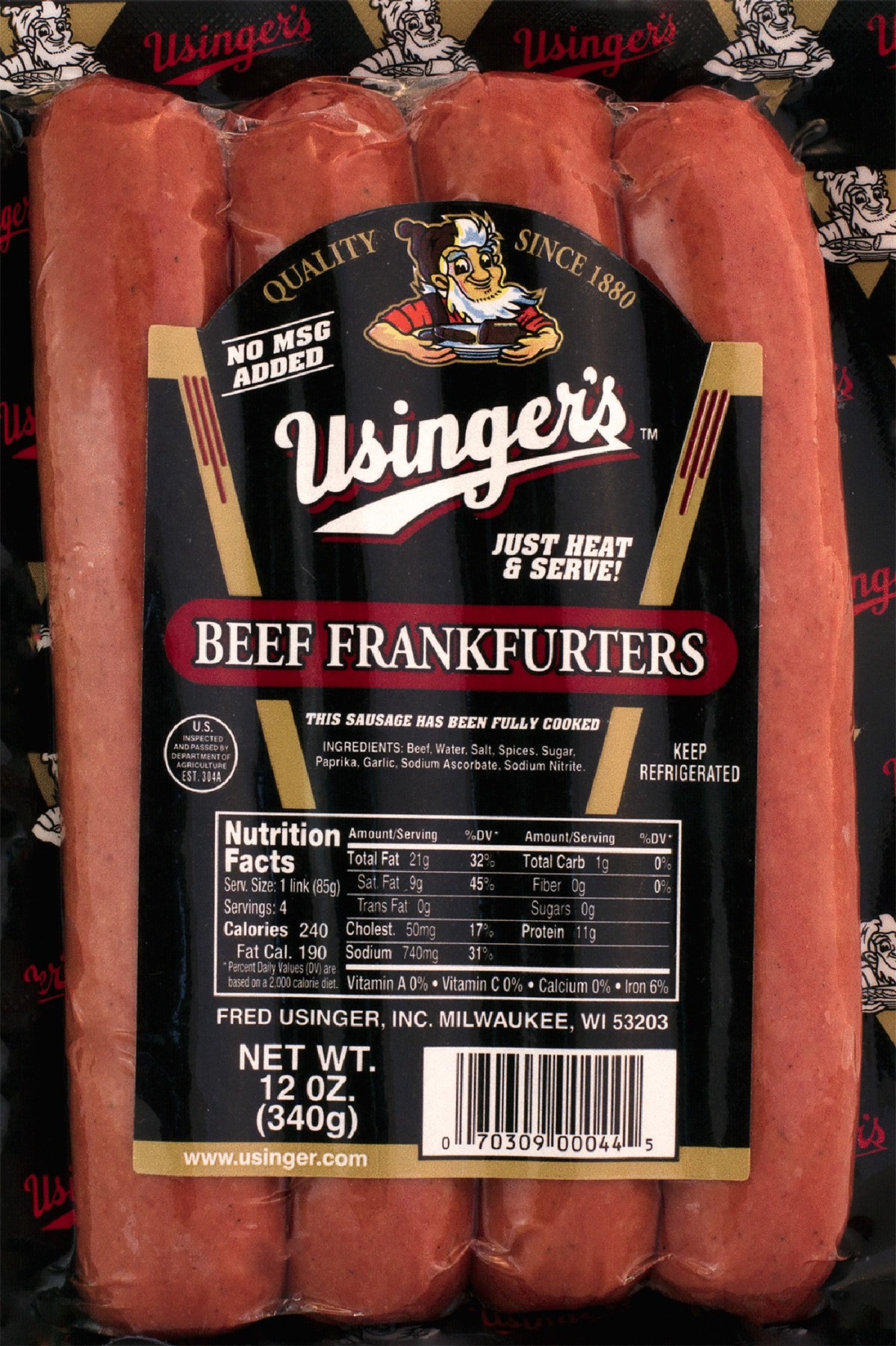 Beef Frankfurters are extra juicy. Smoked to perfection in our oldfashioned brick smokehouses. All beef fans will have trouble just stopping after eating one link.