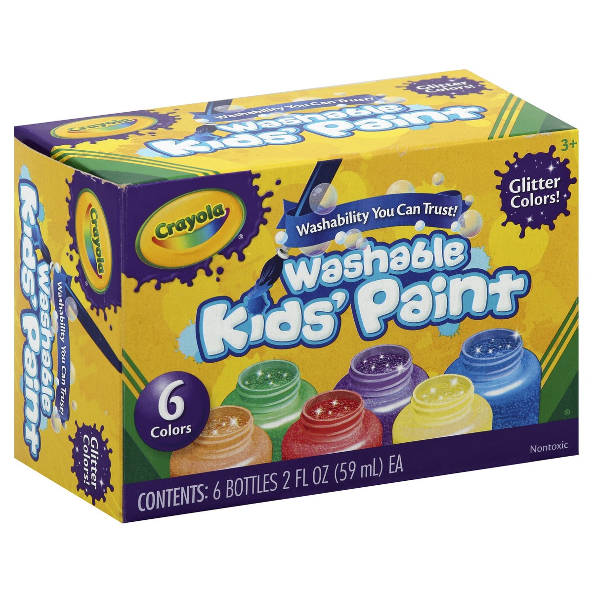 Washability you can trust! Glitter colors! 6 colors. Nontoxic. Crayola Glitter Paint adds extra dazzle to your creative masterpieces. Crayola Washable Kids' Paint is a nontoxic water-based paint that'…