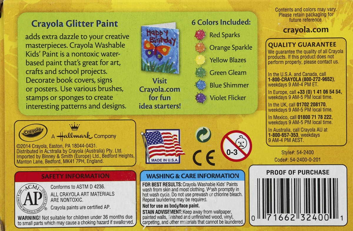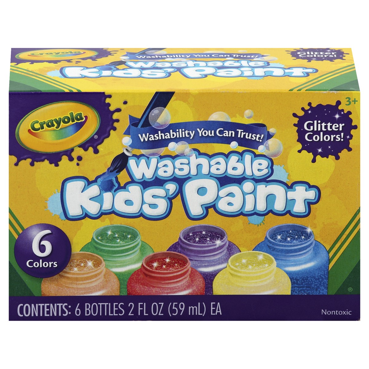 Washability you can trust! Glitter colors! 6 colors. Nontoxic. Crayola Glitter Paint adds extra dazzle to your creative masterpieces. Crayola Washable Kids' Paint is a nontoxic water-based paint that'…