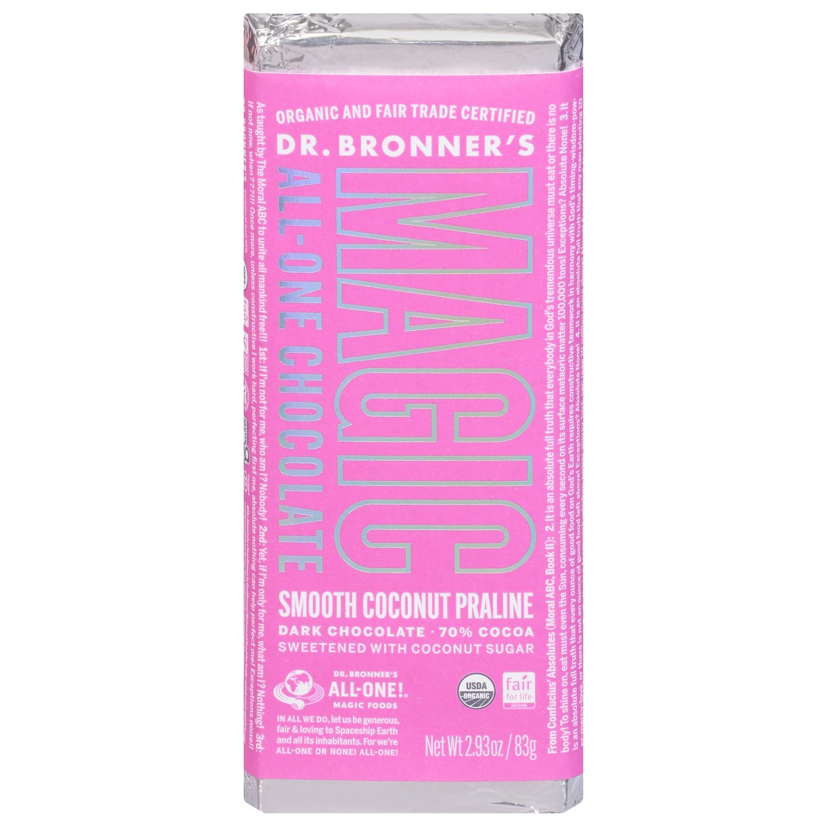 Dr Bronners Coconut Praline Chocolate Bar - 2.93 Oz.