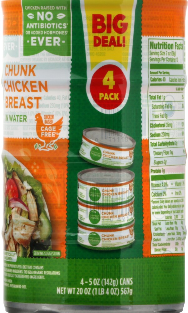 Ingredients: Cooked Organic Chicken Breast Meat, Water, Sea Salt