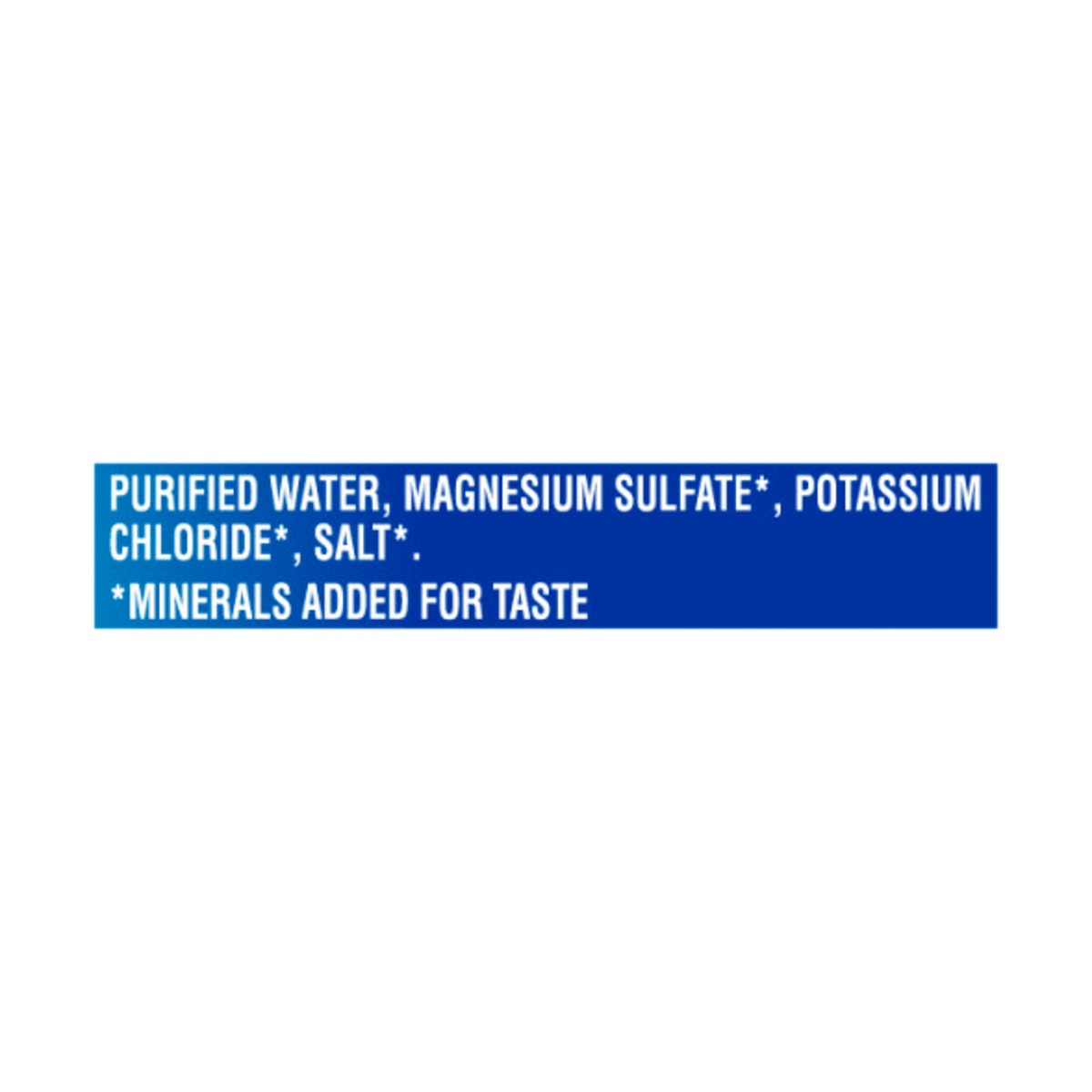 Purified Water, Magnesium Sulfate (Minerals Added for Taste), Potassium Chloride (Minerals Added for Taste), Salt (Minerals Added for Taste).