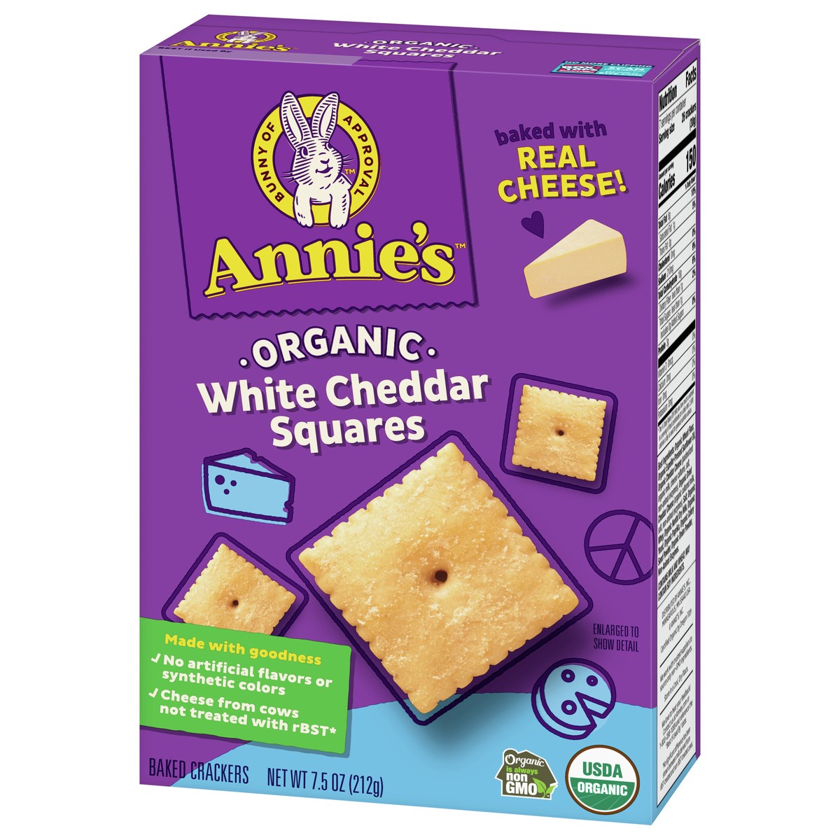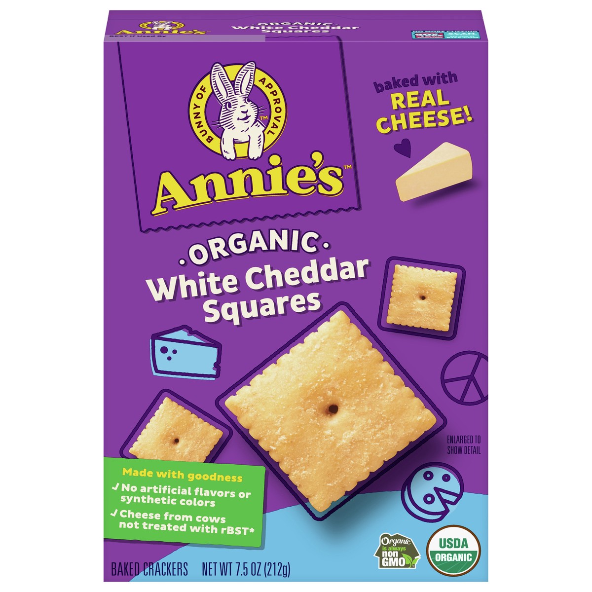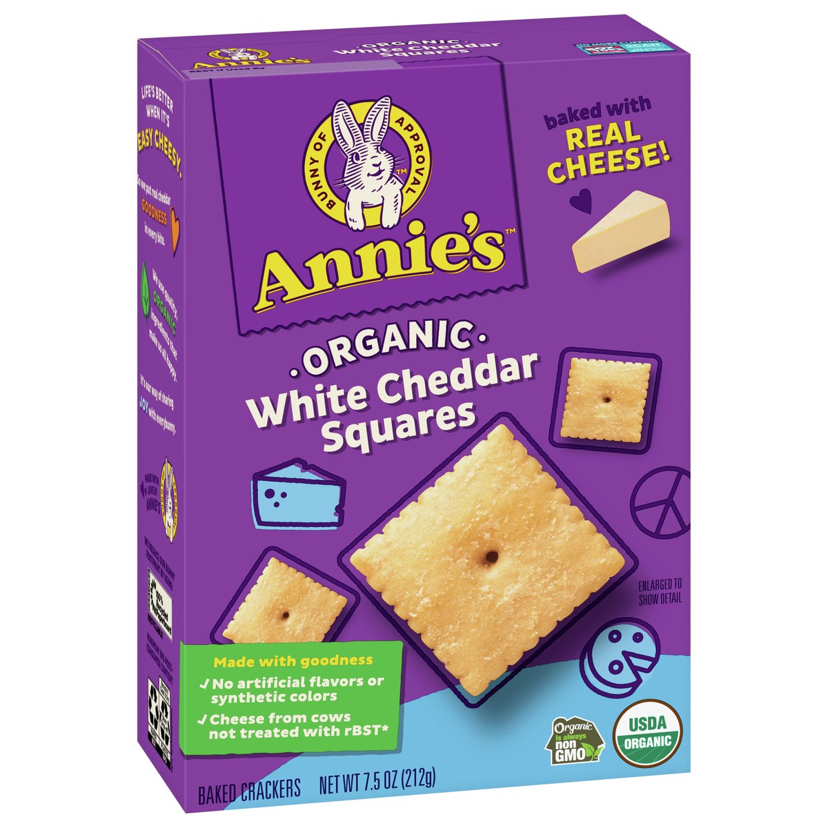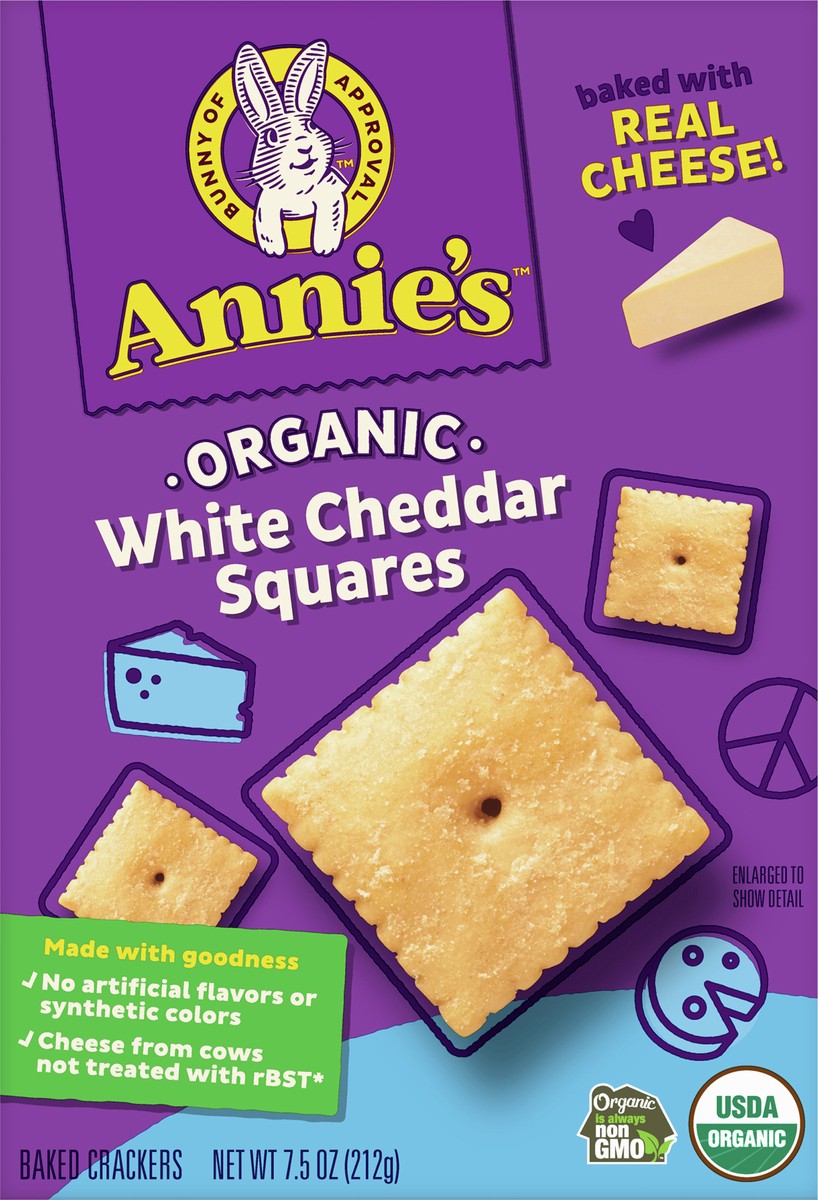 Annie's Organic White Cheddar Squares are packed with signature white cheddar goodness! Plus, these cheese crackers are made with real cheese and organic wheat without any of the scary artificial stuf…