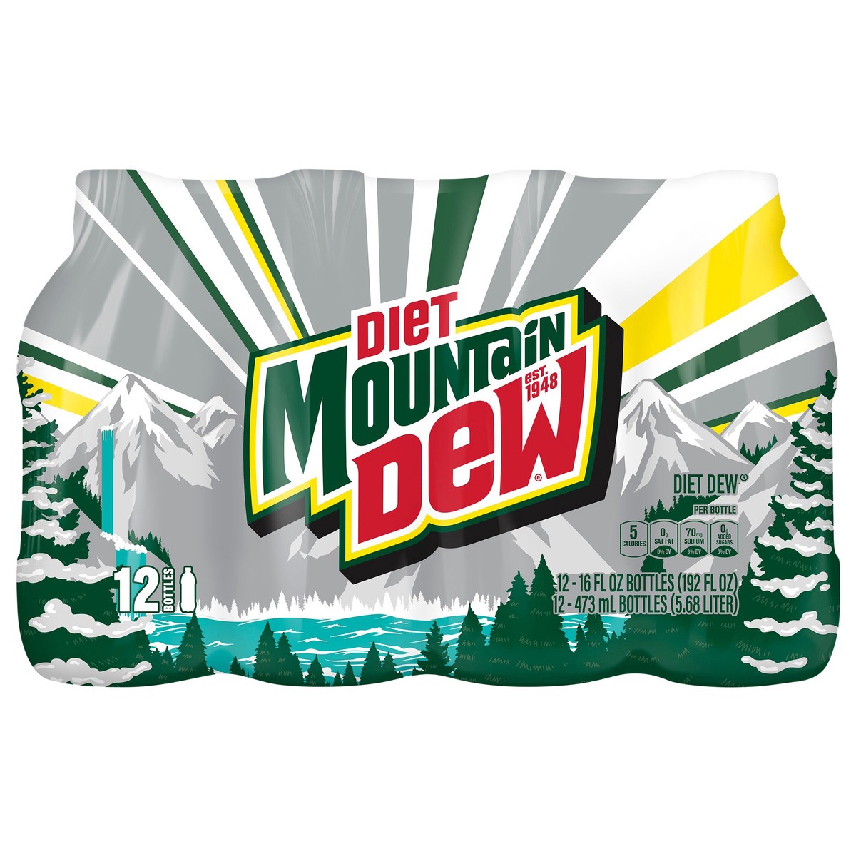 Per Bottle: 5 calories; 0 g sat fat (0% DV); 65 mg sodium (3% DV); 0 g total sugars. Low calorie. Caffeine Content: 72 mg/16 fl oz. See unit container for manufacturer's identity. Mountaindew.com.