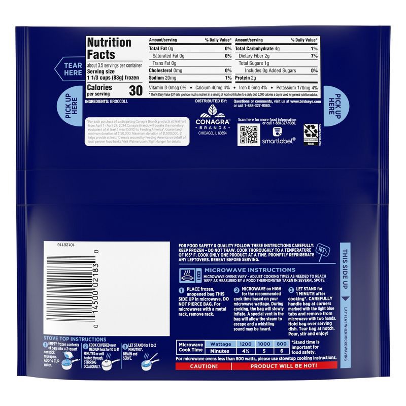 - One 10.8 oz bag of Birds Eye Steamfresh Broccoli Florets Frozen Vegetable
