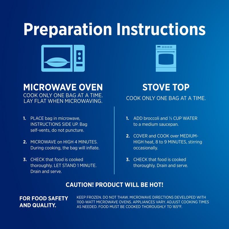 - Quick prep: microwave in the bag or heat on the stovetop