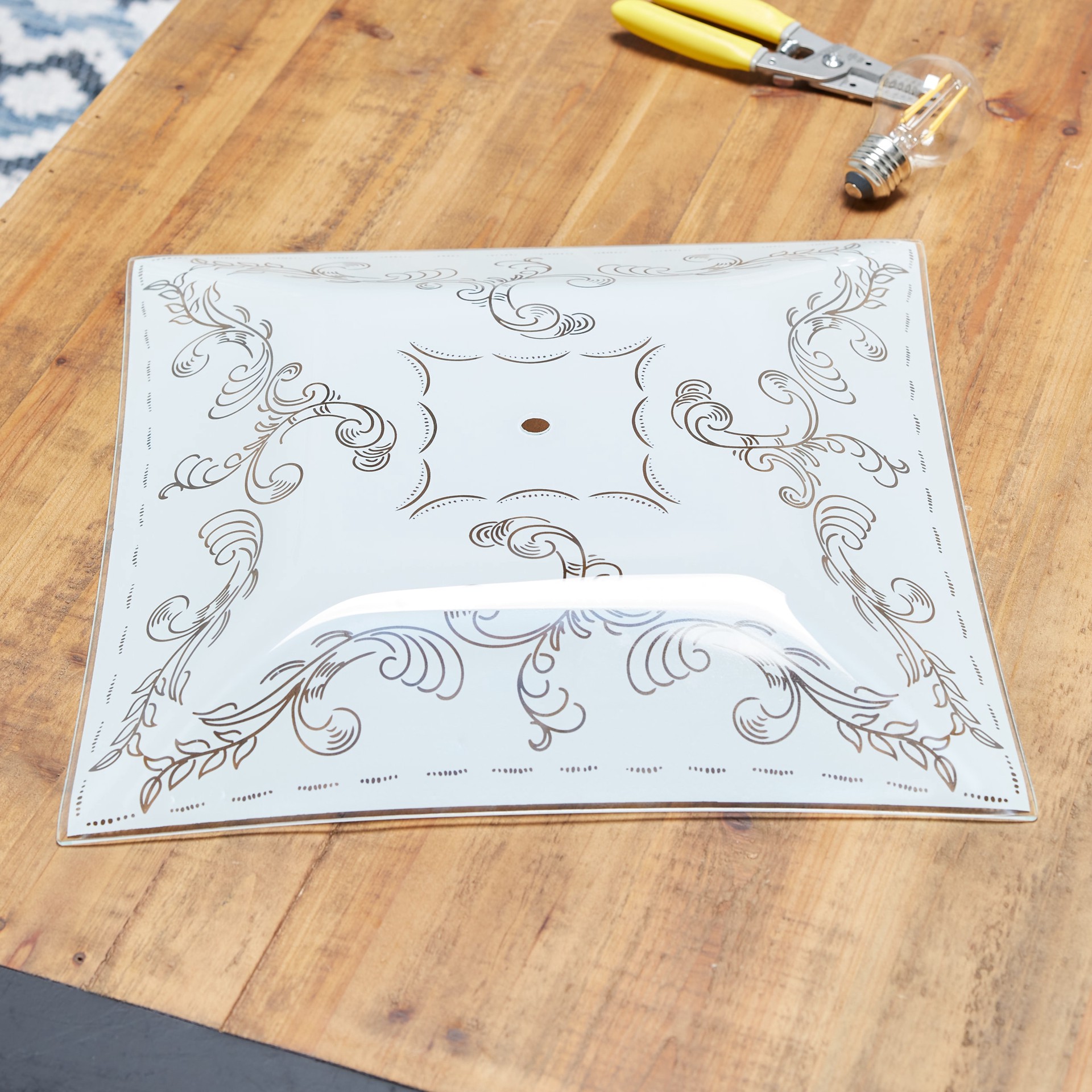 14-In replacement glass. Etched white glass. Square shape. For interior use.