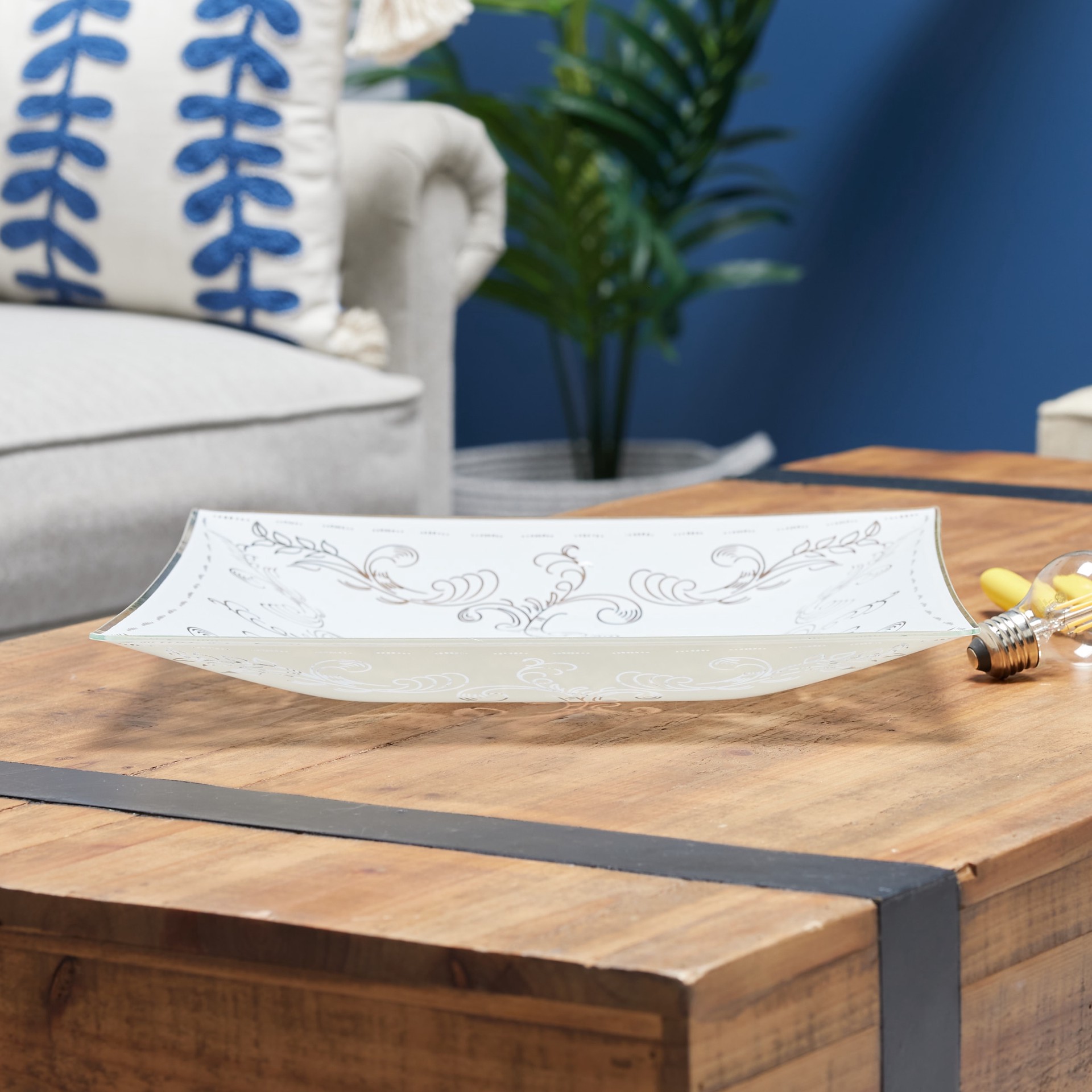 1.85-in x 14-in Square White Etched glass Flush mount light shade with 2-1/4-in Fitter (Lip Fitter)