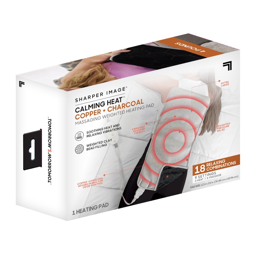 Calming Heat Copper + Charcoal Vibrating Heating Pad by Sharper Image- Weighted Electric Heating Pad, 9 Settings- 3 Heat, 6 Massage- 18 Relaxing Combinations, 12 x 24", 4 lbs