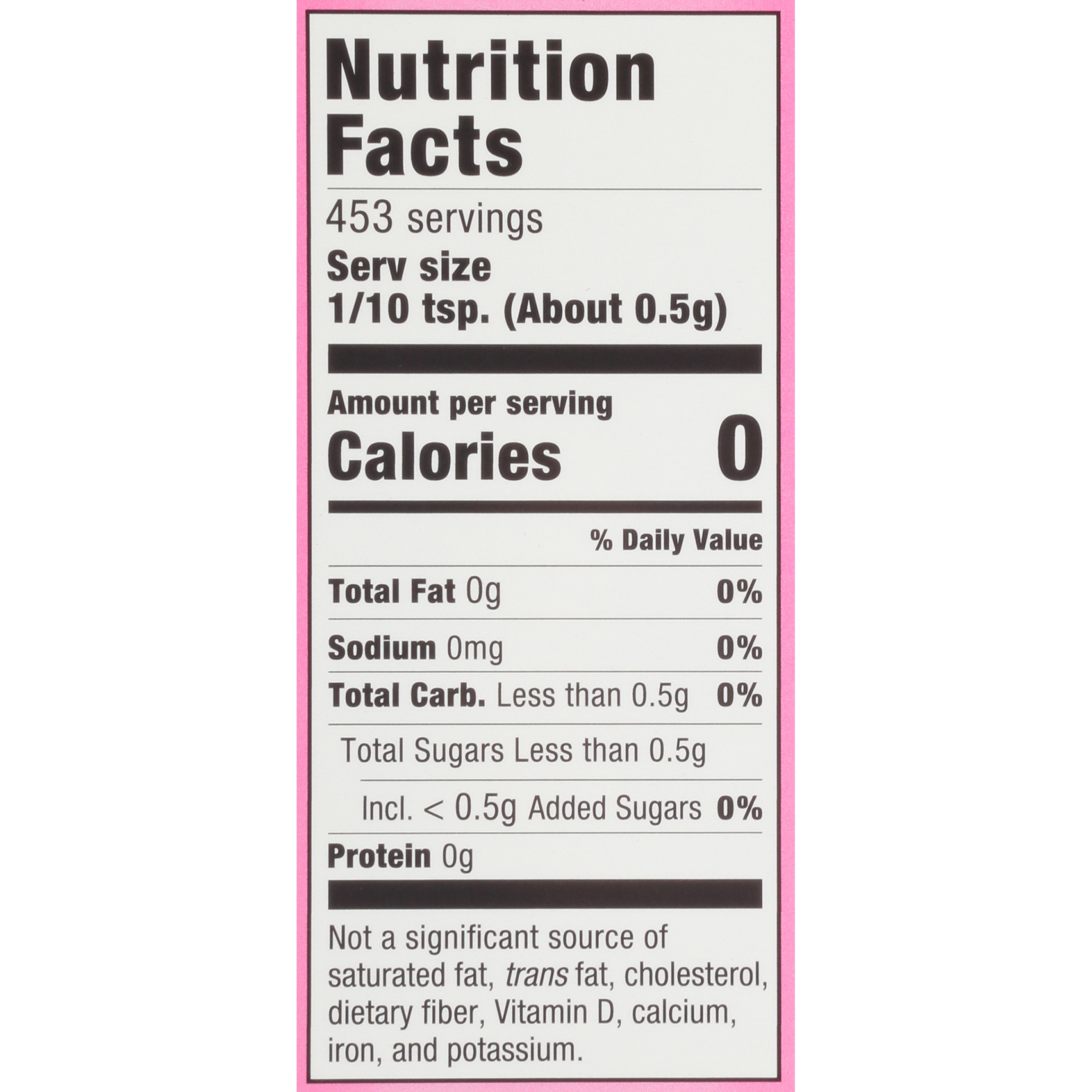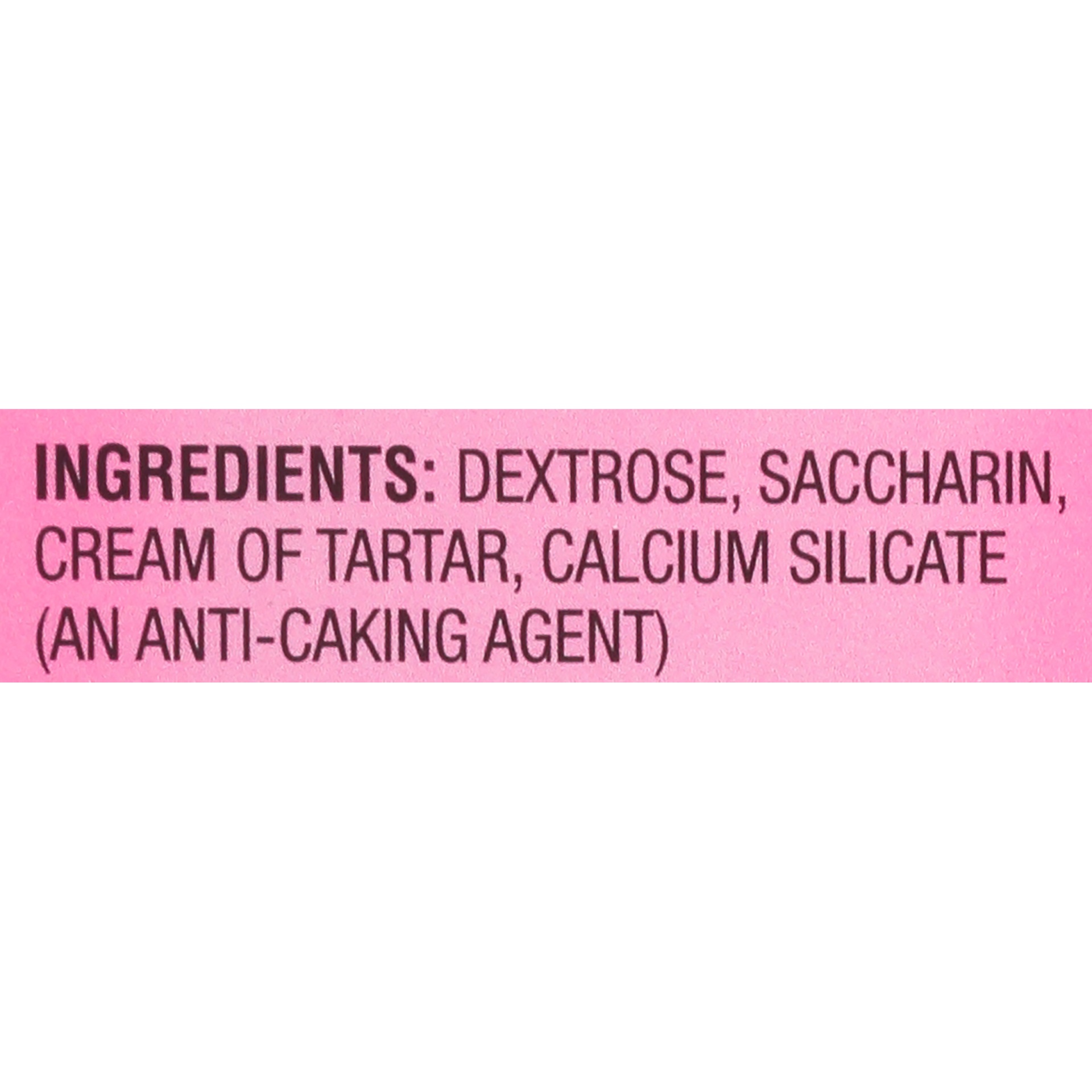 Nutritive Dextrose, Saccharin, Cream of Tartar, Calcium Silicate (an Anti-Caking Agent).
