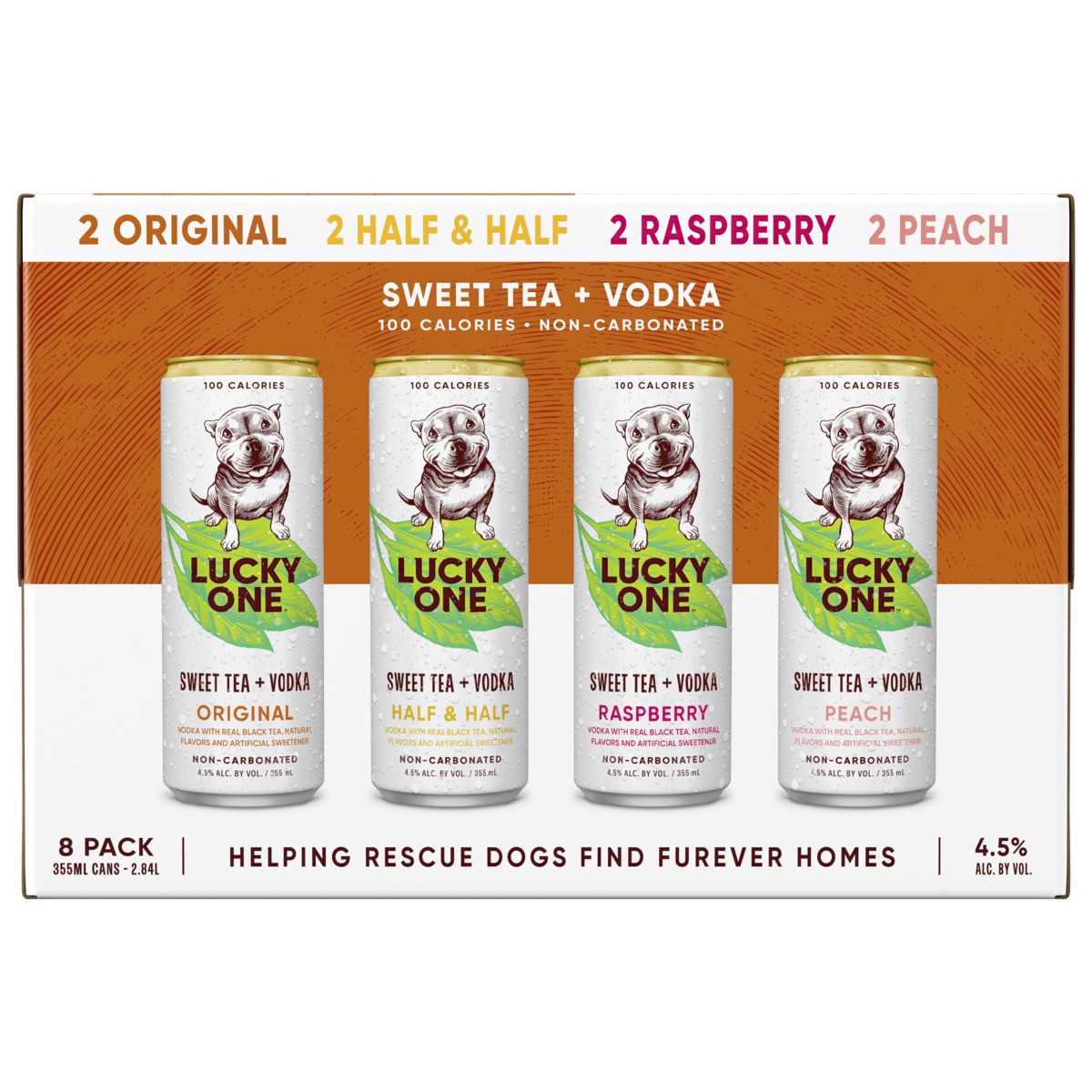 - Variety pack of eight (8) 355ml Cans of Lucky One Sweet Tea + Vodka