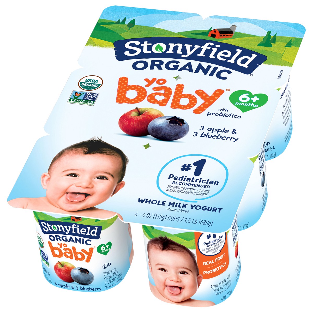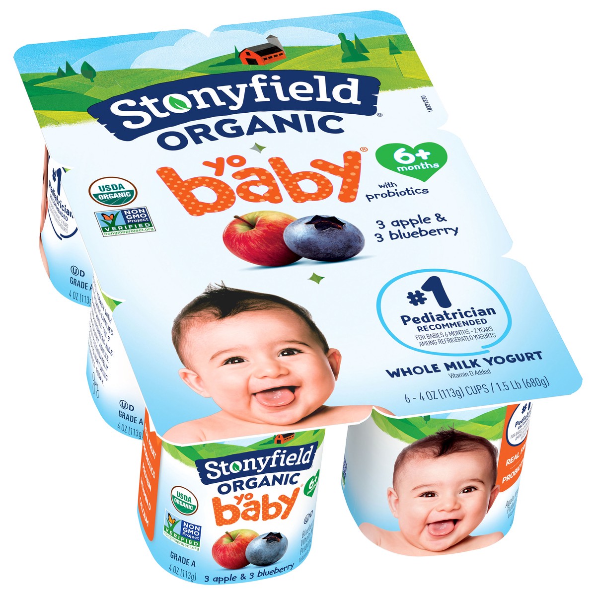 Stonyfield Organic Yobaby Apple & Blueberry Whole Milk Baby Yogurt With Probiotics Cups - 6-4 Oz