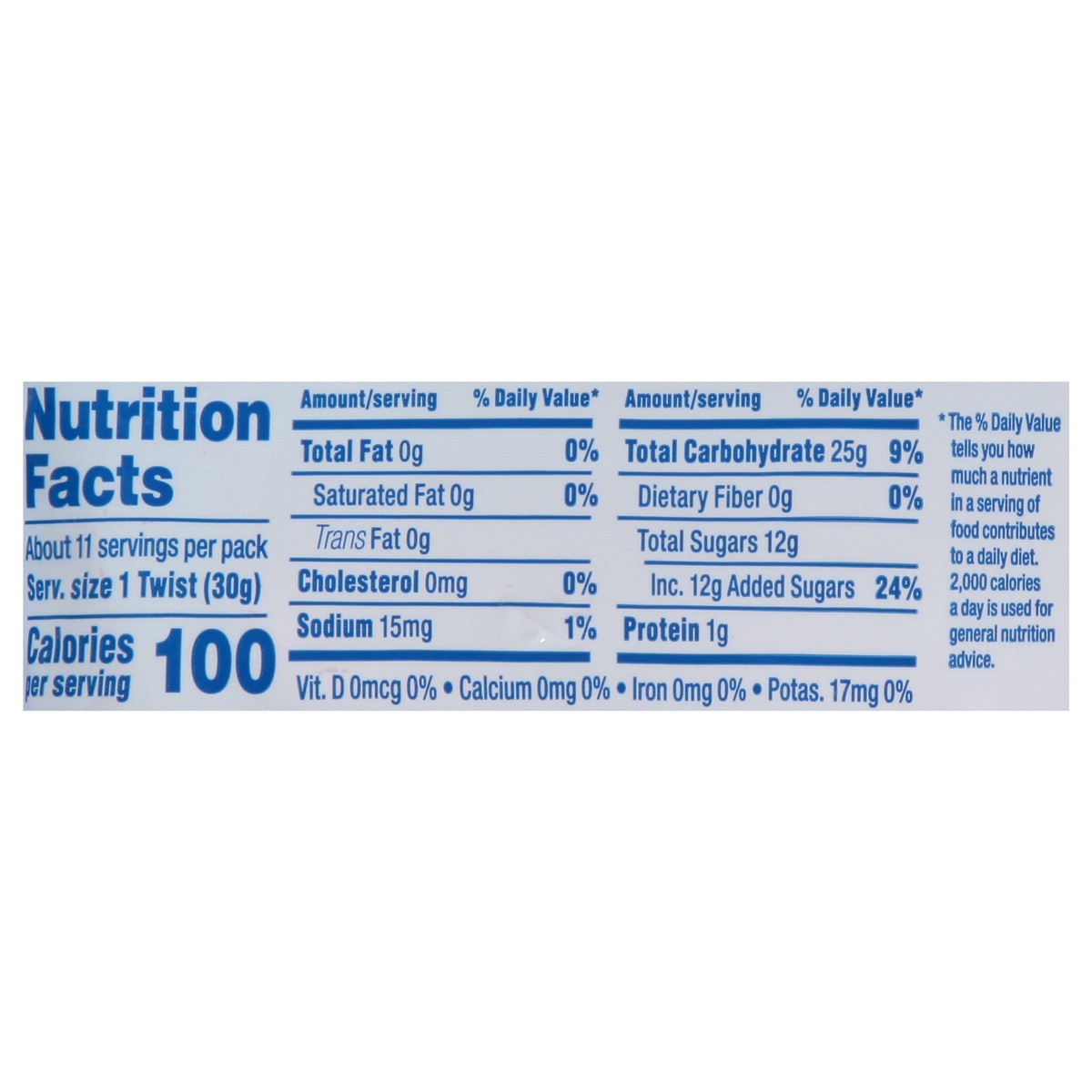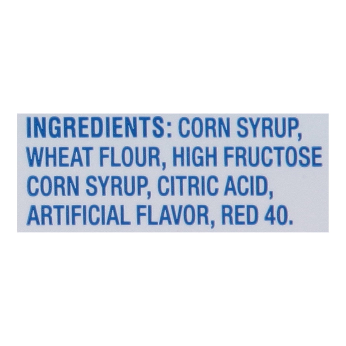 Corn Syrup, Wheat Flour, High Fructose Corn Syrup, Citric Acid, Artificial Flavor, Red 40.