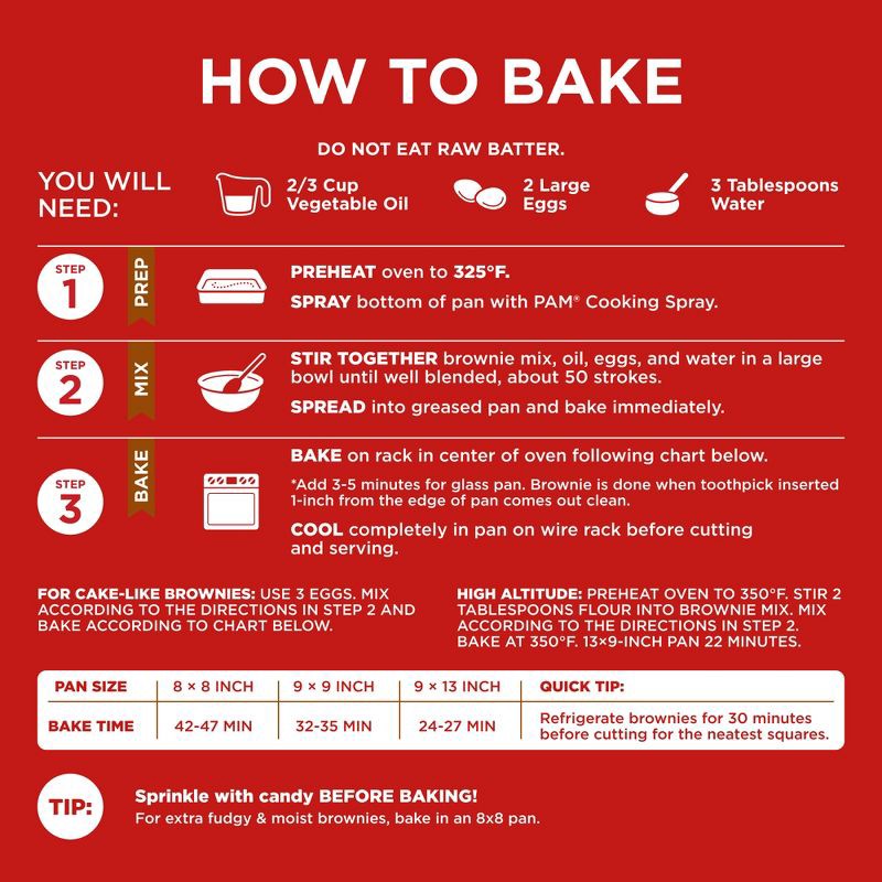 - Just add water, eggs and vegetable oil to the baking mix for a ready-to-bake brownie batter