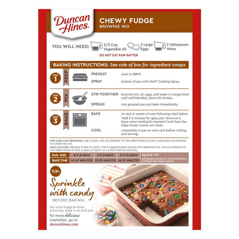 - One 18.3 oz box of Duncan Hines Chewy Fudge Brownie Mix