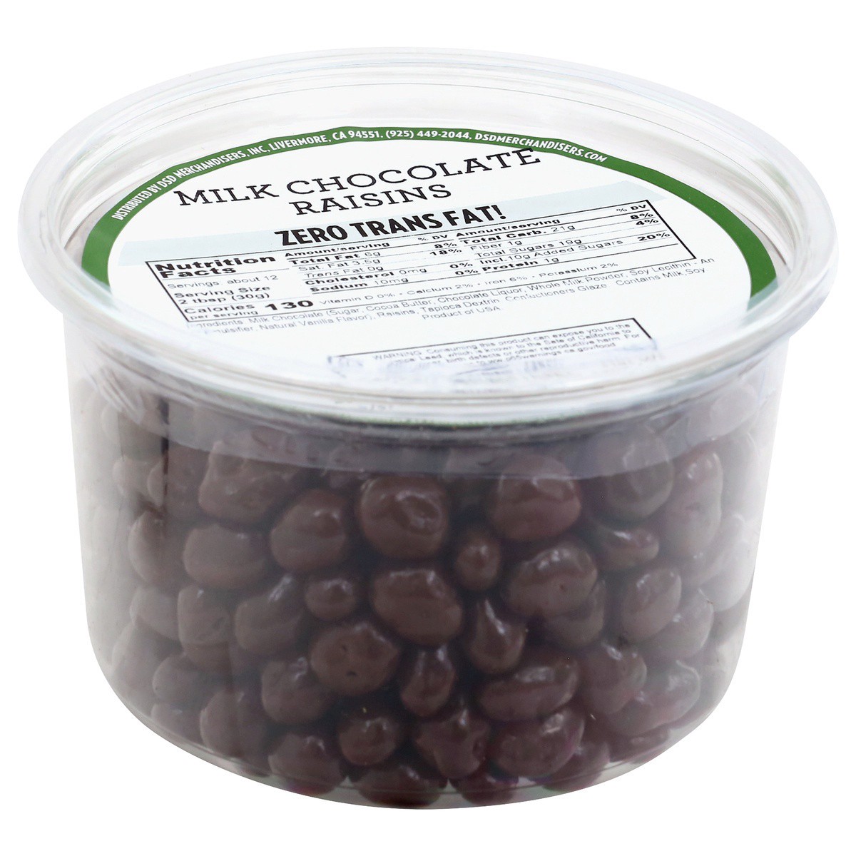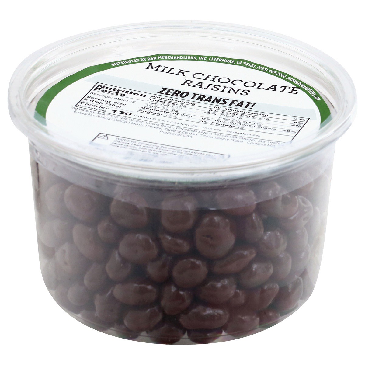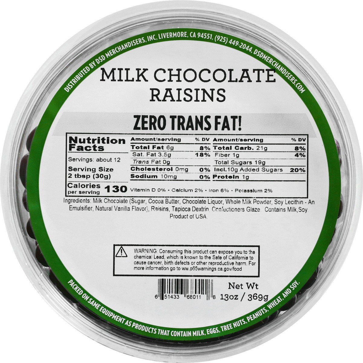 Milk Chocolate (Sugar, Cocoa Butter, Chocolate Liquor, Whole Milk Powder, Soy Lecithin - an Emulsifier, Natural Vanilla Flavor, Raisins Tapioca Dextrin, Confectioners Glaze.