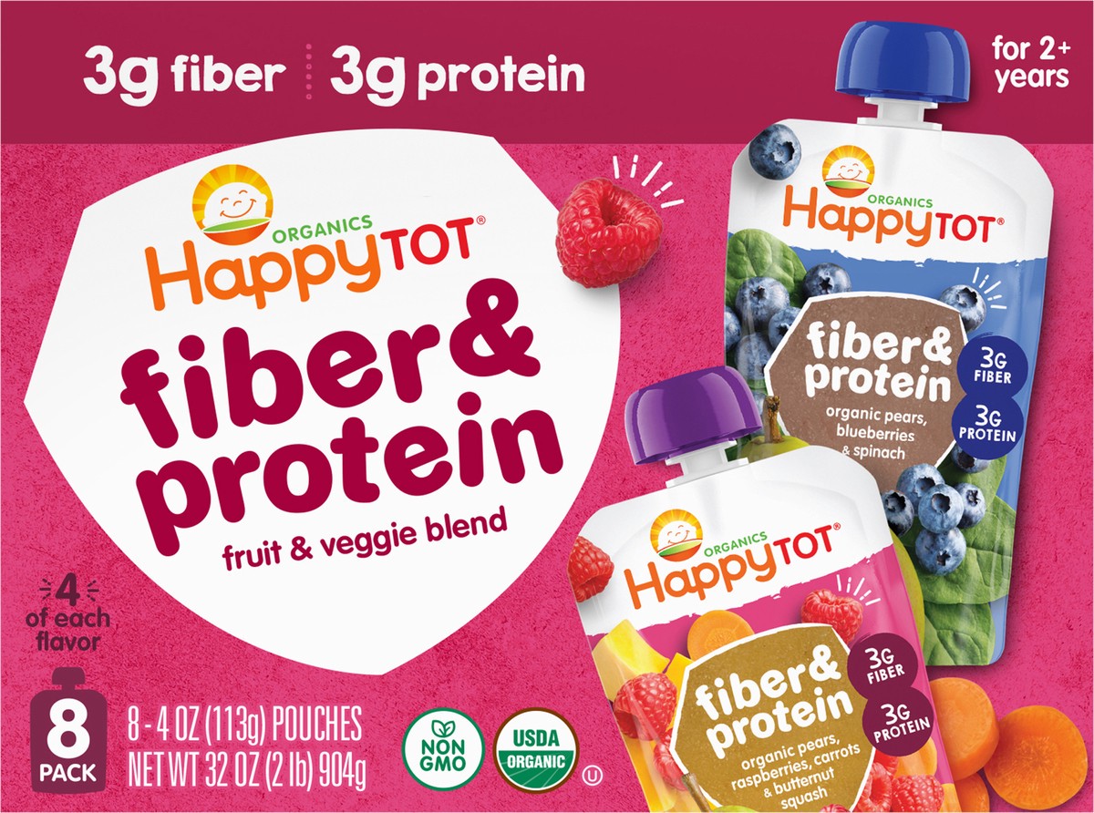 Happy Tot Organics Fiber & Protein Variety Pack Pouch - Fruit & Vegetable Blend, 32 oz