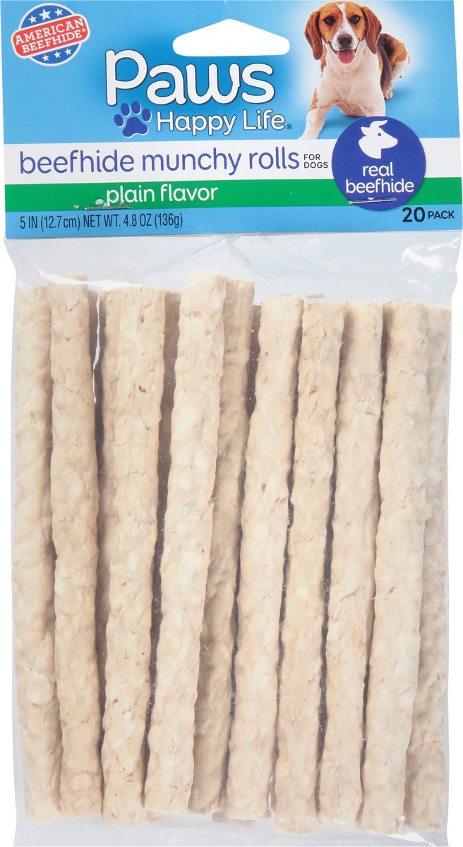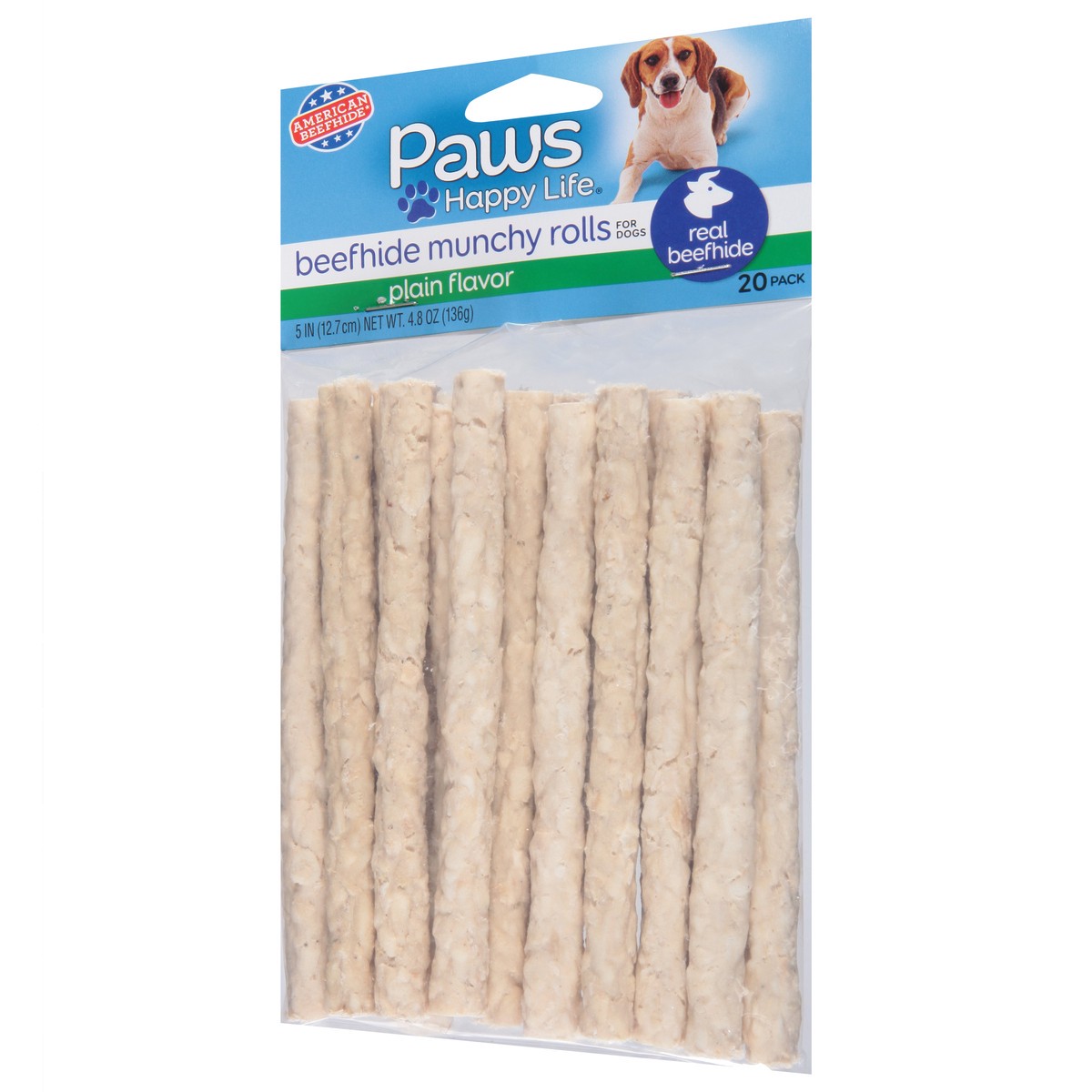 Paws Happy Life 20 Pack 5 Inches Plain Flavor Beefhide Munchy Rolls for Dogs 20 Pack 20 ea