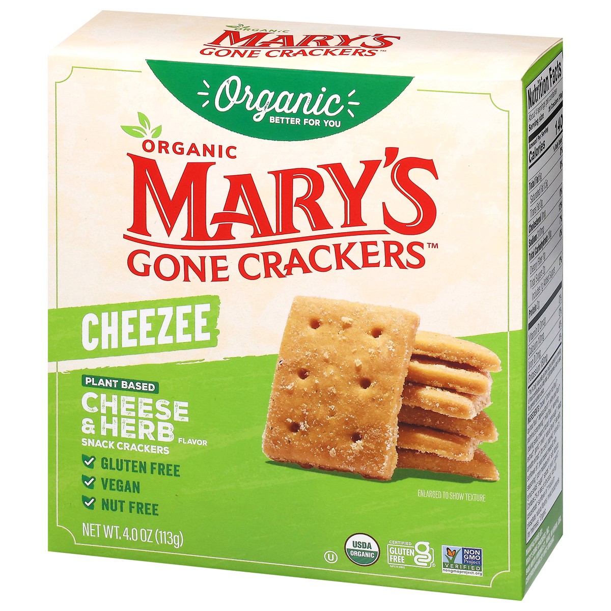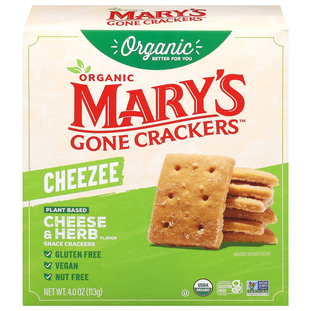 Mary's Gone Crackers Cheezee Organic Plant Based Cheese & Herb Flavor Snack Crackers 4.0 oz