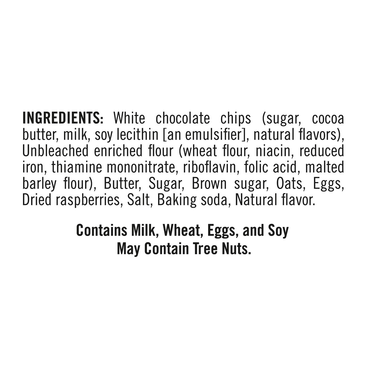 White Chocolate Chips (Sugar, Cocoa Butter, Milk, Soy Lecithin [an Emulsifier], Natural Flavors), Unbleached Enriched Flour (Wheat Flour, Niacin, Reduced Iron, Thiamine Mononitrate, Riboflavin, Folic …