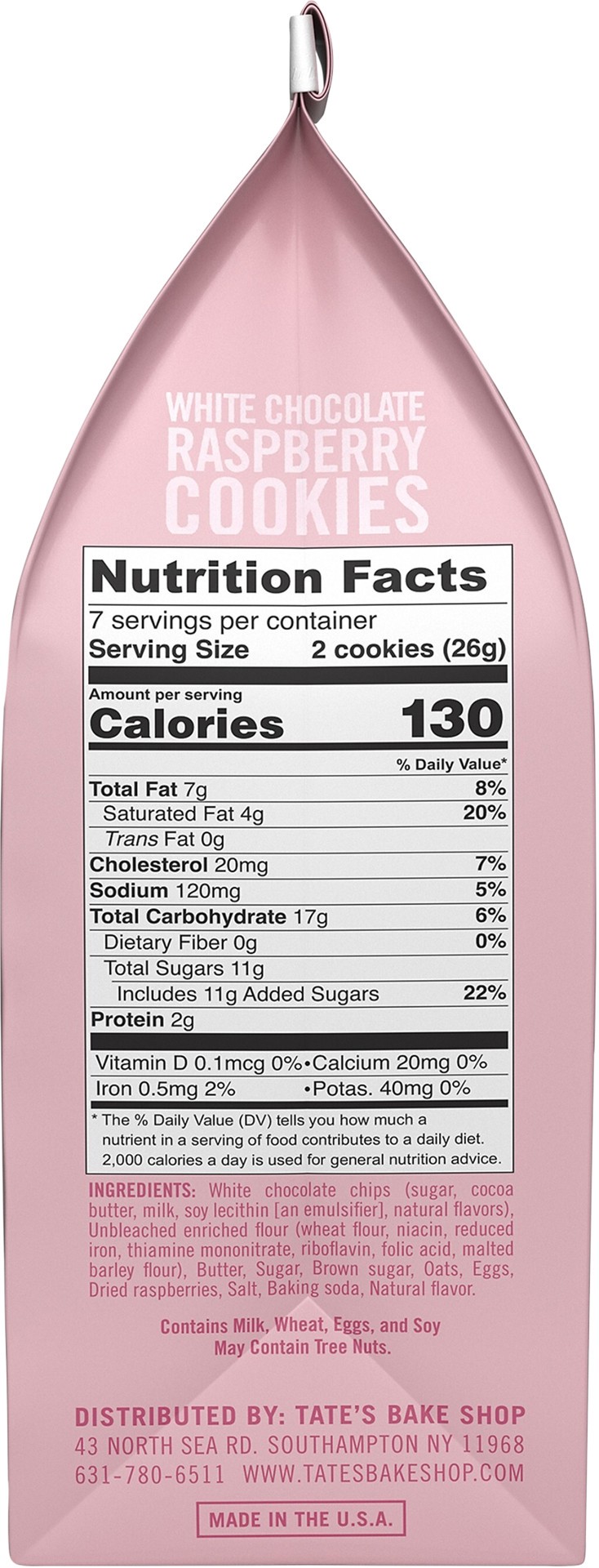 Tate's Bake Shop Cookies White Chocolate Raspberry Cookies - 6.5 Oz
