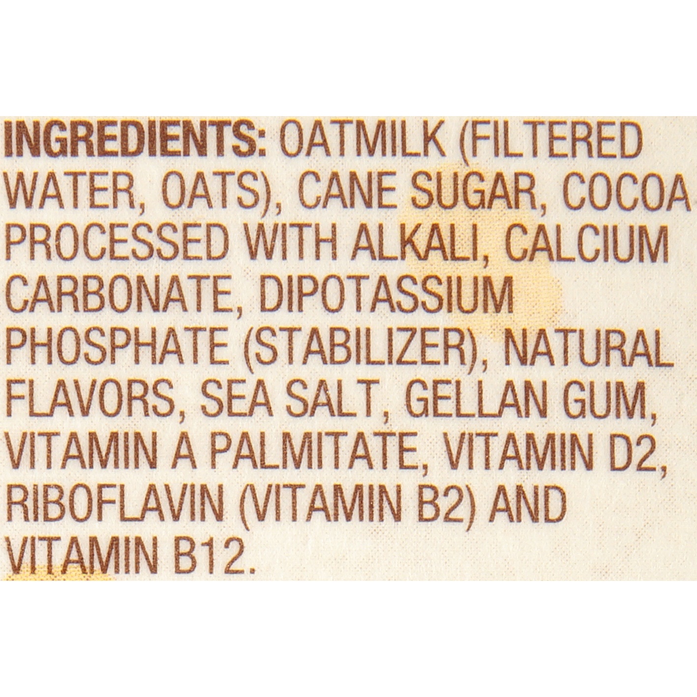 Oatmilk (Water, Oats), Cane Sugar, Cocoa Processed with Alkali, Calcium Carbonate, Dipotassium Phosphate (Stabilizer), Natural Flavors, Sea Salt, Gellan Gum, Vitamin A Palmitate, Vitamin D2, Riboflavi…