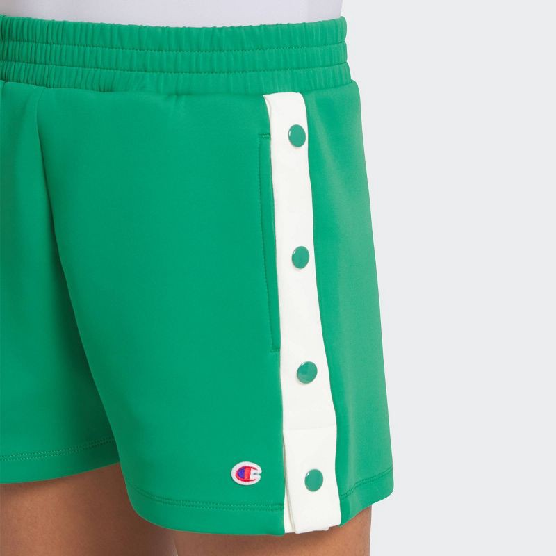 First-place style starts with these Champion® Girls' Tear Away Track Shorts. Featuring snap closures at the sides, these girls' track shorts are ideal for quick changes. Crafted from a smooth and stre…