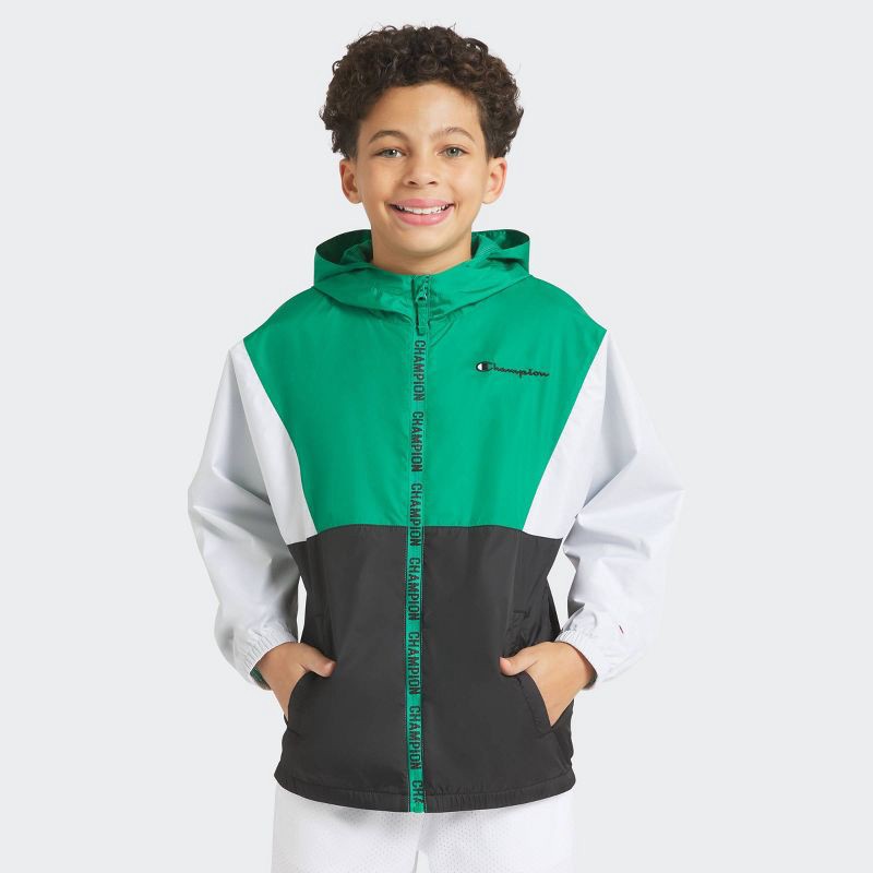 Champion Boys' Colorblock Windbreaker Jacket - Green/White/Black L