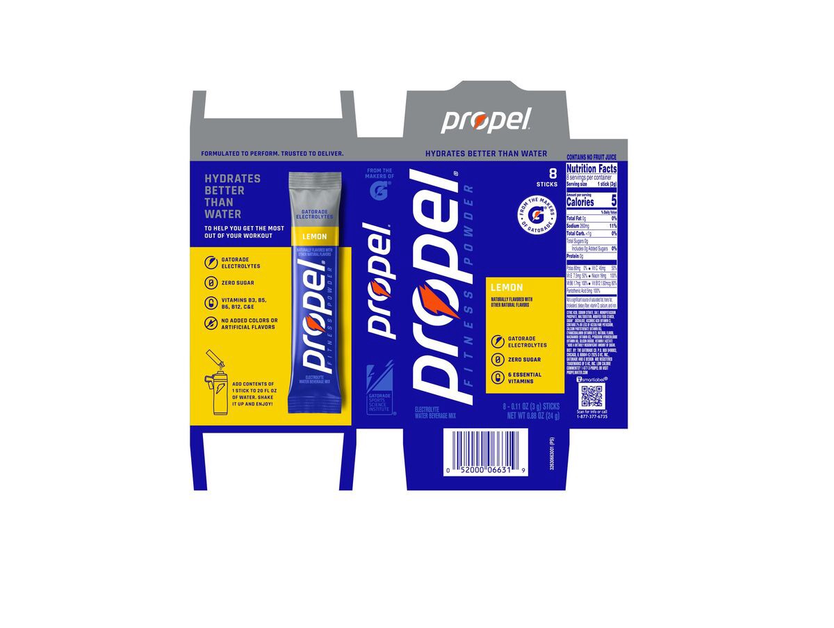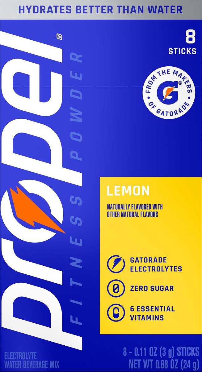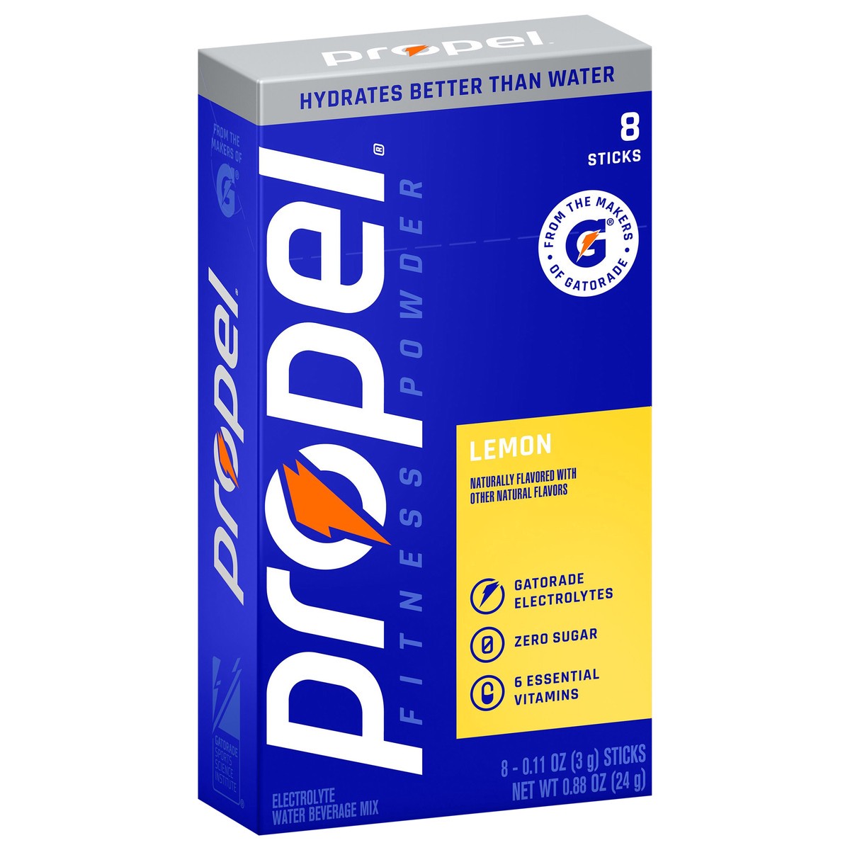 Hydrate better than water alone with Propel Fitness Powder Lemon Stick Packs. They contain Gatorade electrolytes, 6 essential vitamins and zero sugar. Simply mix powder with 20 oz of water in a water …