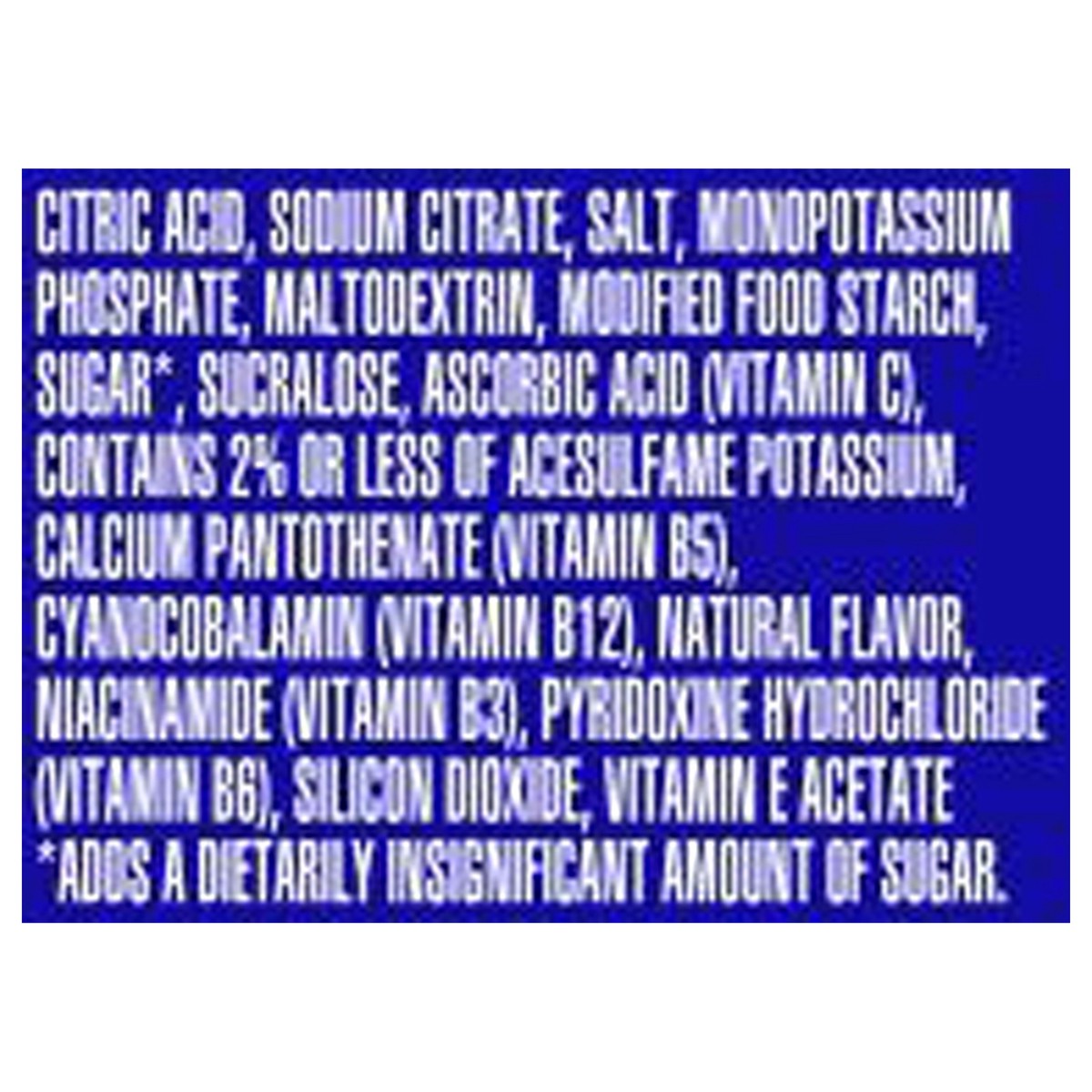 Citric Acid, Sodium Citrate, Salt, Monopotassium Phosphate, Maltodextrin, Modified Food Starch, Sugar*, Sucralose, Ascorbic Acid (Vitamin C), Contains 2% or Less of Acesulfame Potassium, Calcium Panto…