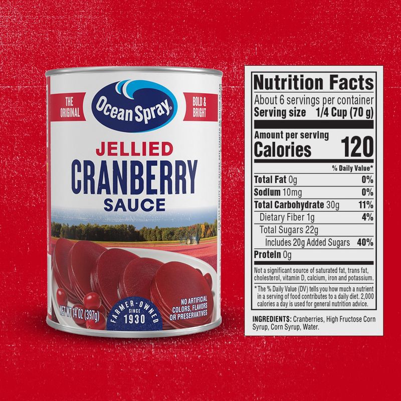 - One (1) 14 oz can of Ocean Spray® Jellied Cranberry Sauce with about 6 servings per can