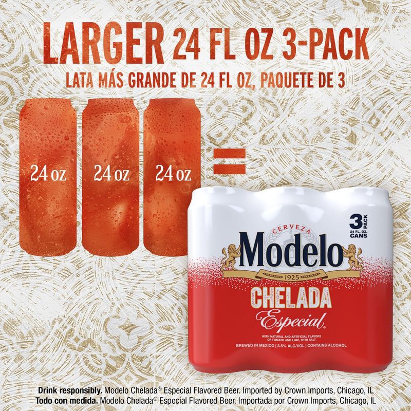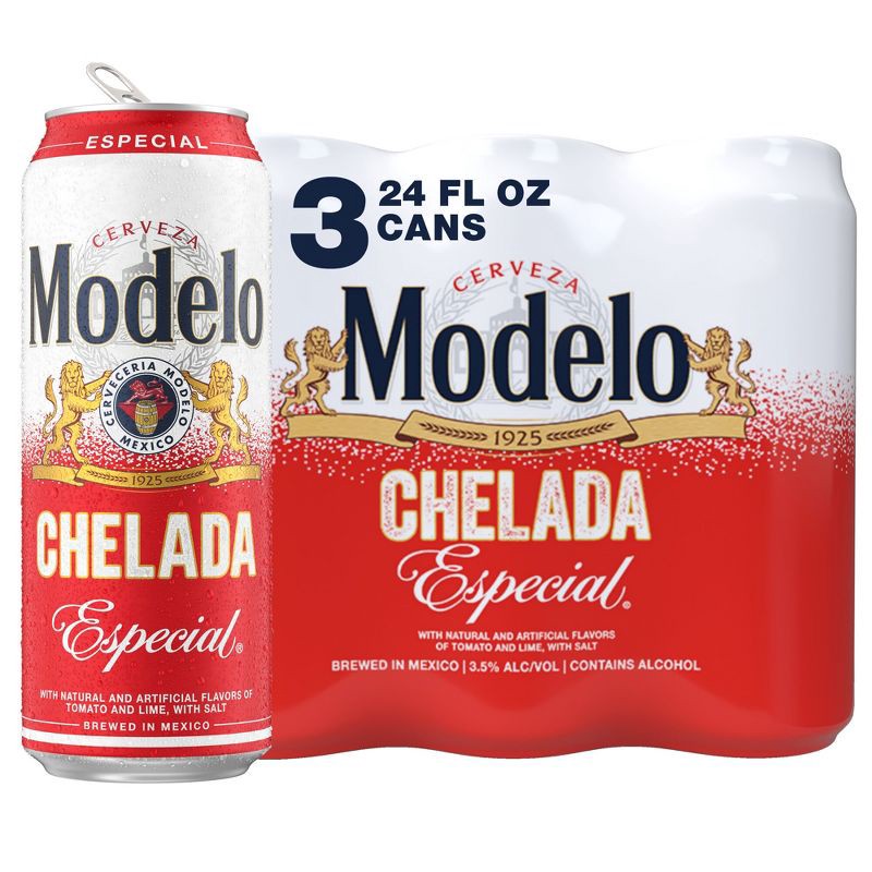 - 3 pack of 24 fl. oz. cans of Modelo Chelada Especial Mexican Imported Beer