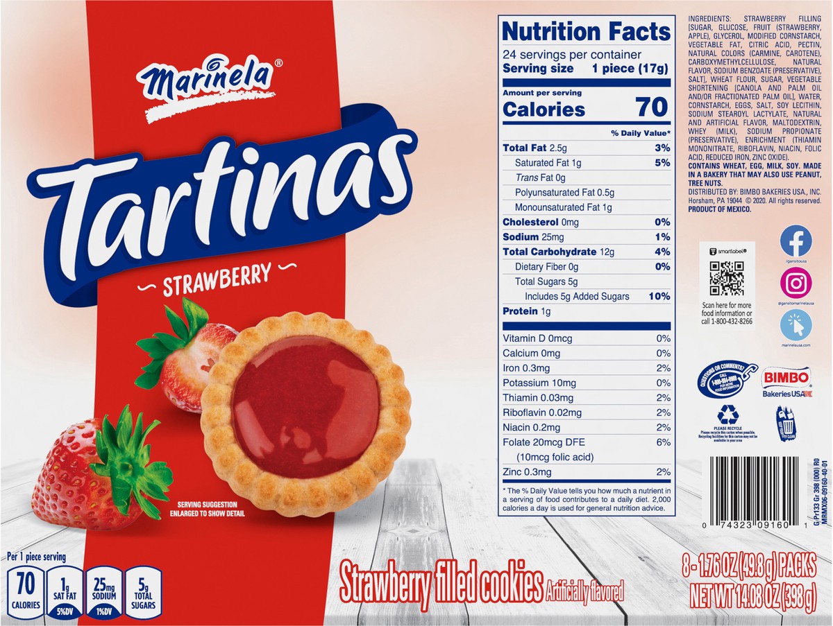 Marinela Tart-A-Let Strawberry Filled Cookies, 8 packs, Tart Cookies, 14.08 oz Multipack