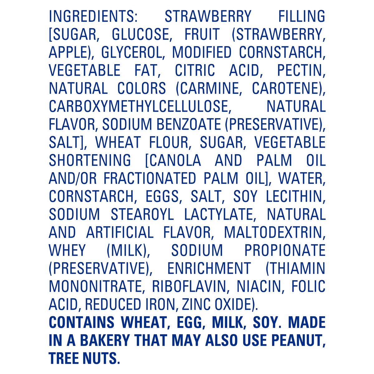 Strawberry Filling [Sugar, Glucose, Fruit [Strawberry, Apple], Glycerol, Modified Cornstarch, Vegetable Fat, Citric Acid, Pectin, Natural Colors [Carmine, Carotene], Carboxymethyl Cellulose, Natural F…