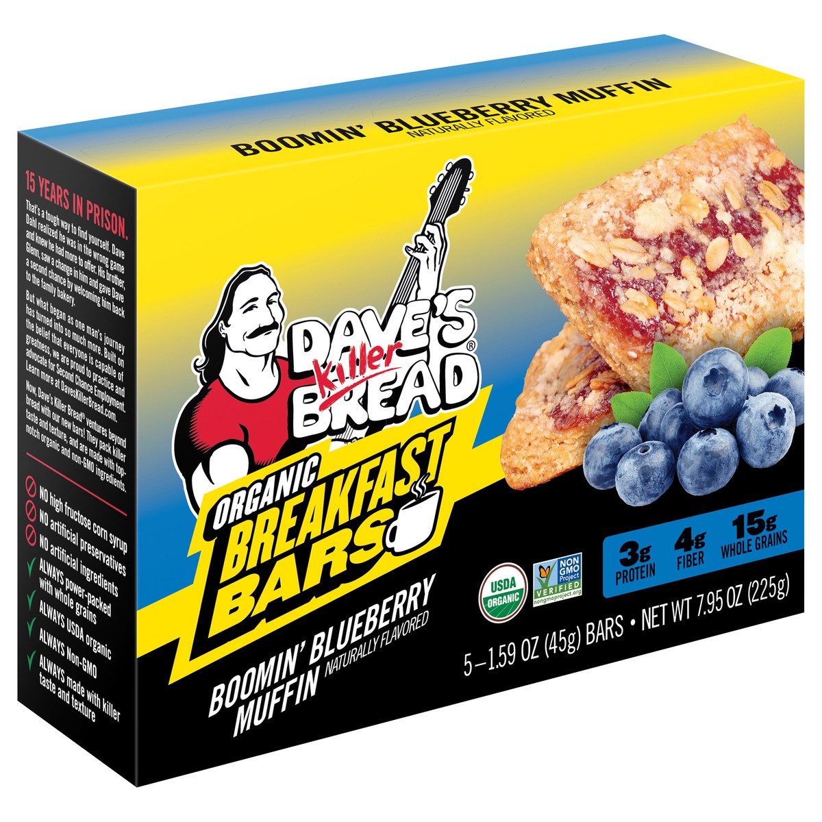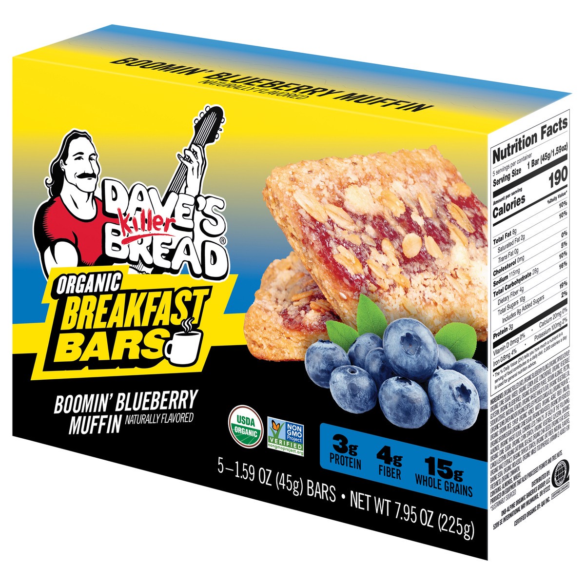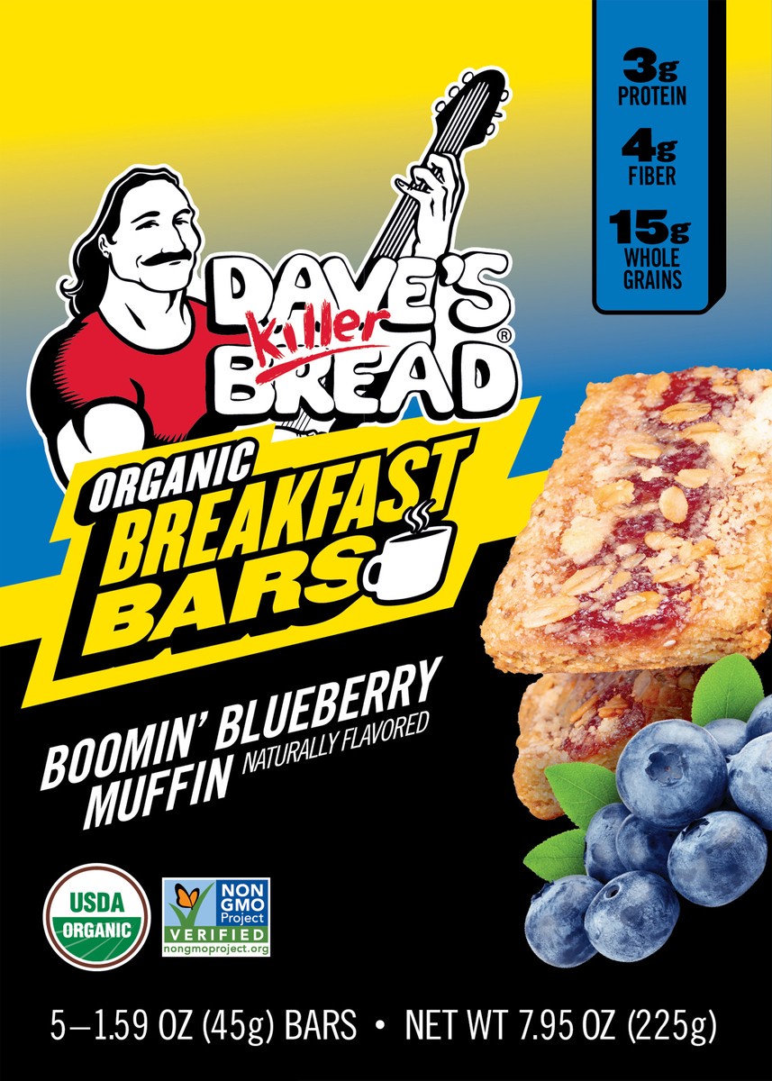 - You''ll get one five count box of individually wrapped Dave''s Killer Bread Boomin'' Blueberry Muffin Naturally Flavored Organic Breakfast Bars