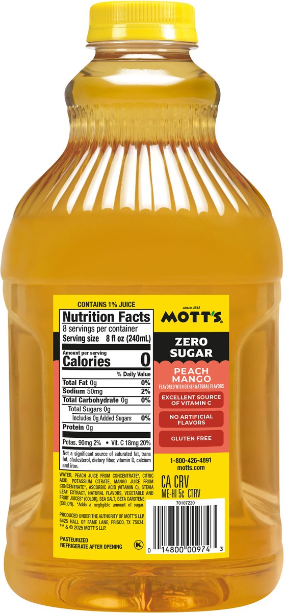 Mott's Zero Sugar Peach Mango Juice Drink, 64 fl oz